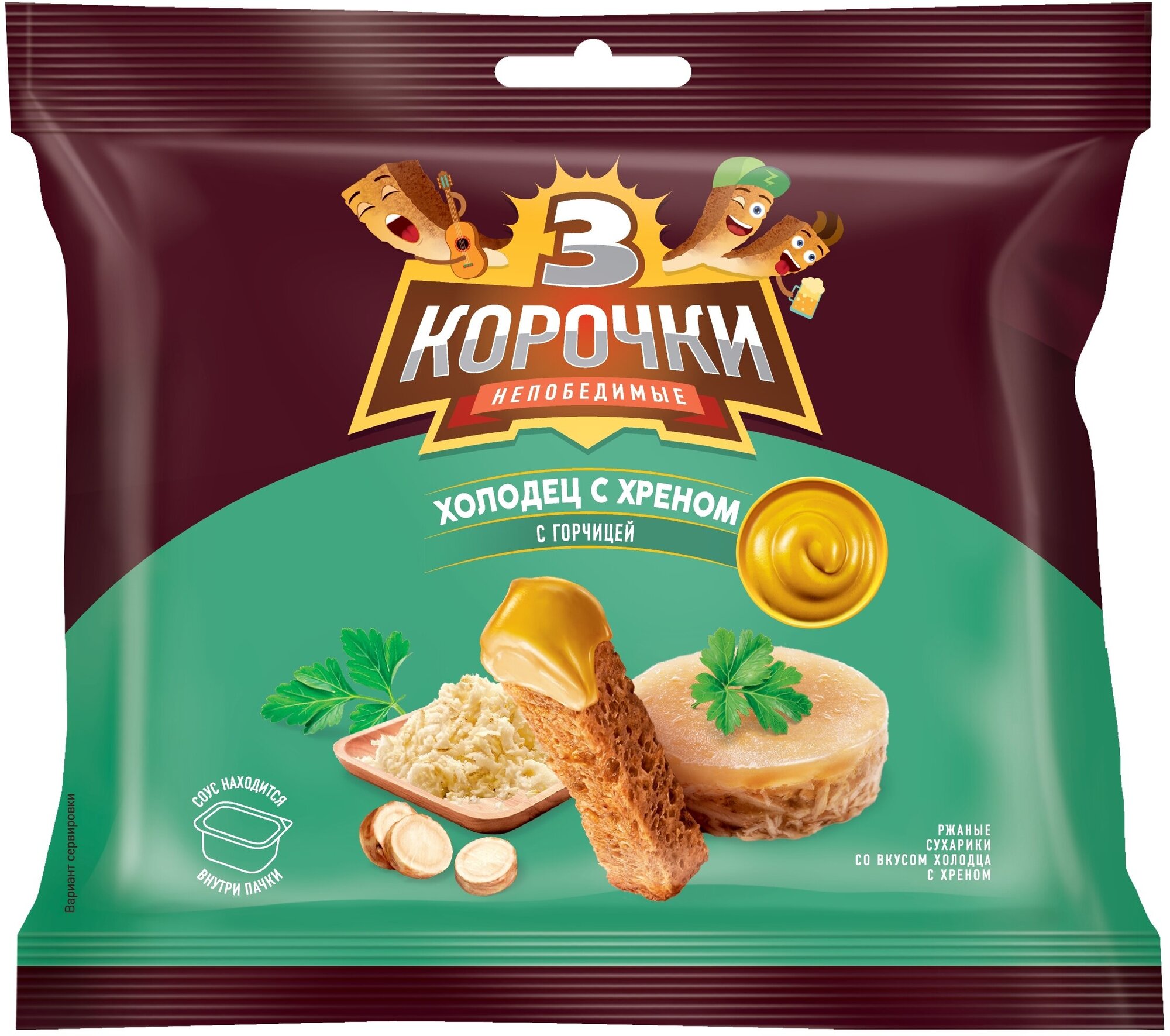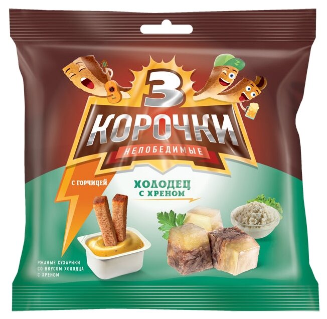 Сервис сравнения цен СкидкаГИД предлагает сравнить цены на товар «Сухарики Три корочки Холодец с хреном 60г с горчичным соусом 25мл»