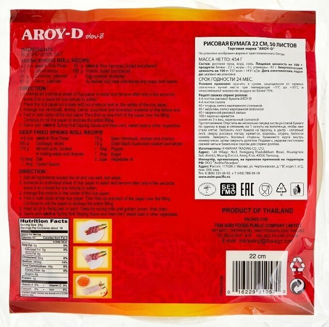 На сегодняшний день товар «Бумага рисовая Aroy-D 22см 50 листов» можно купить с кешбеком в 1 магазине: delikateska