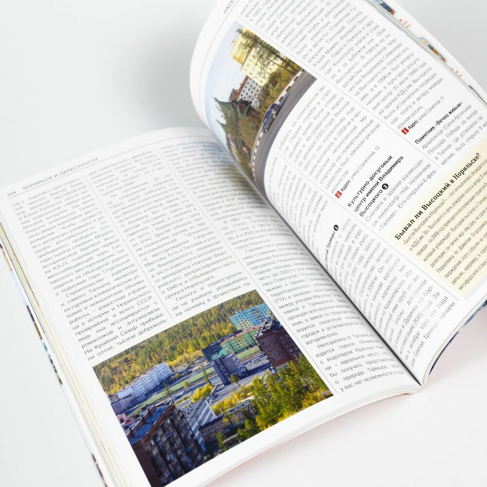Путеводитель включает актуальную информацию о природных и культурных достопримечательностях Норильска и полуострова Таймыр в целом, рассказывает об истории основания края, интересных туристических маршрутах, видах досуга, инфраструктуре и перспективах развития региона.
