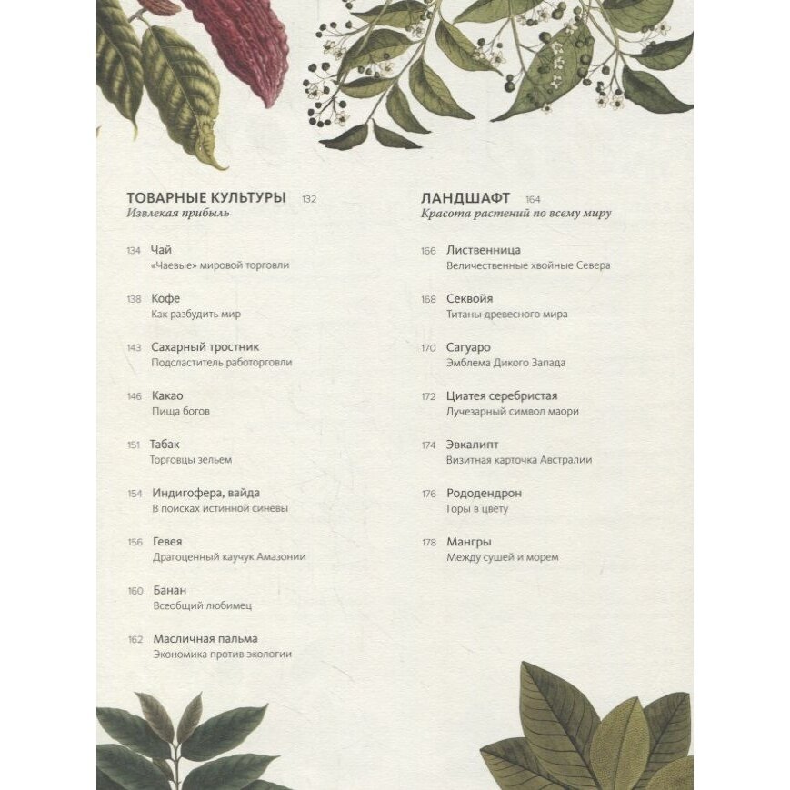 Развитие человечества невозможно представить себе без растений: на протяжении тысячелетий они дают нам пищу, кров, одежду, средства передвижения и лекарства. Хелен и Уильям Байнум — историки науки и медицины, а также страстные садоводы — прослеживают в этой книге историю взаимодействия людей с 80 ключевыми растениями на протяжении последних 12 000 лет. Они начинают с первых окультуренных злаков, заложивших основы развития цивилизаций (пшеница, рис, кукуруза), посвящают следующий раздел растениям, из которых создавался наш материальный мир — корабли, жилища, одежда, мебель (дуб, лен, хлопок), затем переходят к товарным культурам, радикально повлиявшим на мировую экономику, колониализм и постколониализм, равно как и на привычные нам модели потребления (чай, кофе, сахарный тростник). От тыквы и фасоли, пришедших из Америки, до африканских сорго и ямса, от бразильского каучука до китайского бамбука — географический охват книги грандиозен. Это потрясающее издание, иллюстрированное уникальными старинными рисунками, гравюрами, литографиями и картинами из собрания Королевских ботанических садов Кью в Лондоне, станет источником новых знаний и вдохновения для всех, кому интересна как история, антропология и культурология, так и ботаника, и для каждого, кто неравнодушен к красоте и разнообразию царства флоры.