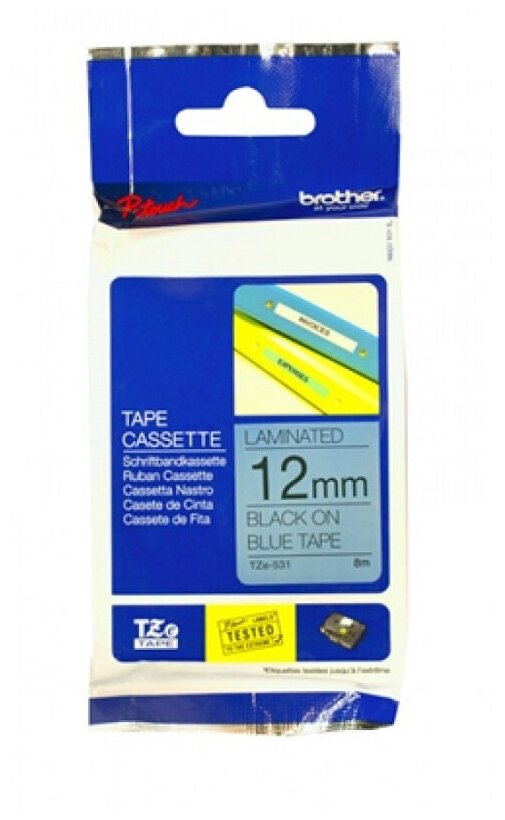 Картридж BROTHER 12мм черный шрифт синий фон 2м TZE531 (размер: 12х8000 мм)