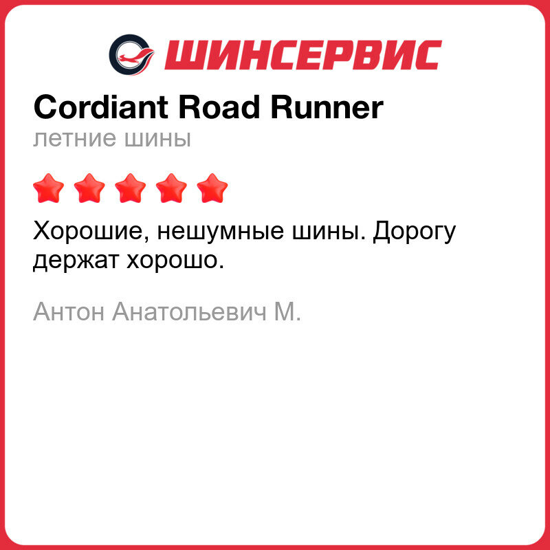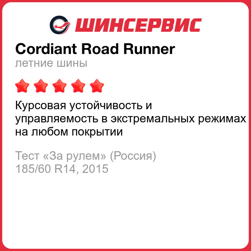 Cordiant — летние дождевые шины для легковых автомобилей класса B, C от компании Cordiant. Эта модель рекомендуется поклонникам быстрой и активной езды. Основные ее достоинства — высокая прочность и дополнительный комфорт во время длительных путешествий.