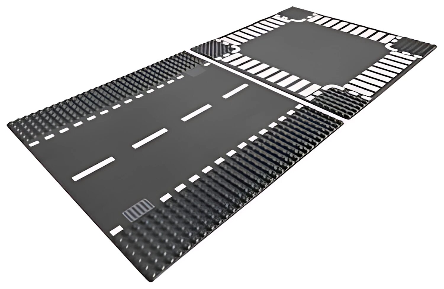 Детали из представляемого набора специально предназначены для того, чтобы придать внешнему виду города Lego City еще большую реалистичность. В городе можно построить настоящие автомобильные дороги! Набор включает две секции. Первая секция — этой прямой участок дороги с разметкой, а другая секция имитирует перекресток с пешеходными переходами! Размер: ок. 15х9х2,5 см.