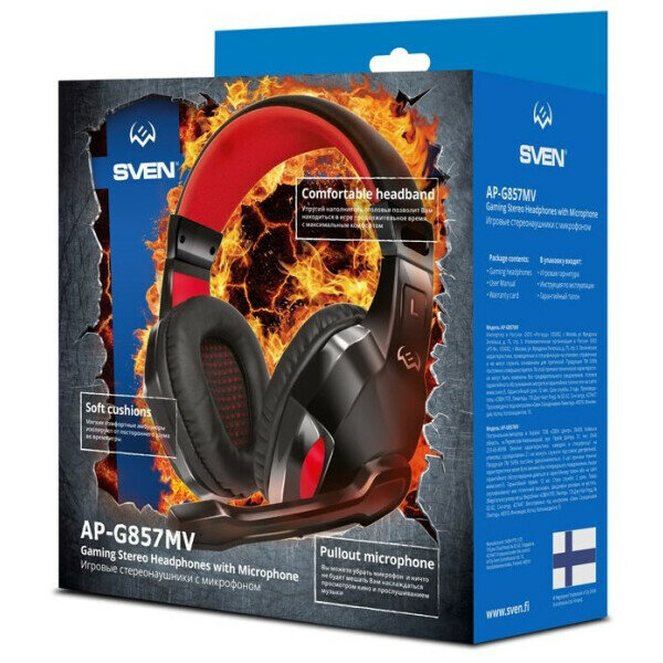| Прочие особенности и свойства | Доступные накладные наушники закрытого типа с микрофоном на откидной дужке и кабельным подключением. Позиционируются как продукт базовой ценовой категории, предназначенный для подключения к персональным компьютерам и ноутбукам, оборудованным раздельными разъемами для подключения наушников и микрофона. Прочная пластиковая конструкция c регулируемым оголовьем и эффектным наружным дизайном выполнена в черно-красной цветовой гамме, которая наверняка понравится молодежной аудитории. Умеренное усилие прижима надежно удерживает наушники Sven AP-G857MV на голове пользователя, а мягкие амбушюры с отделкой из деликатной искусственной кожи обеспечивают комфортные ощущения во время длительных игровых сессий. Наушники Sven AP-G857MV оснащены динамическими драйверами диаметром 40 мм с импедансным сопротивлением 32 Ом. Они создают качественный и громкий звук с выраженным басовым акцентом. Отлично справляются с акустическим оформлением игрового окружения любых актуальных игровых проектов. Закрытая конструкция гарантирует выраженную пассивную шумоизоляцию и эффективно защищает от внешних шумов. Чувствительный направленный микрофон с пассивным шумоподавлением гарантирует адекватное качество захвата голоса. Оснащаются длинным кабелем (2,2 м) в высокопрочной полиамидной тканевой оплетке с односторонним подводом и двумя разъемами 3-pin mini-Jack 3.5mm. |