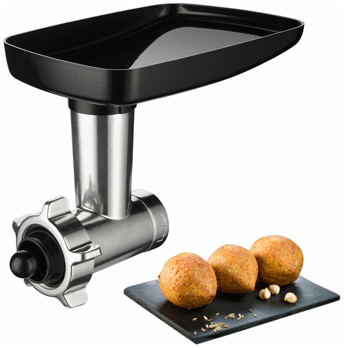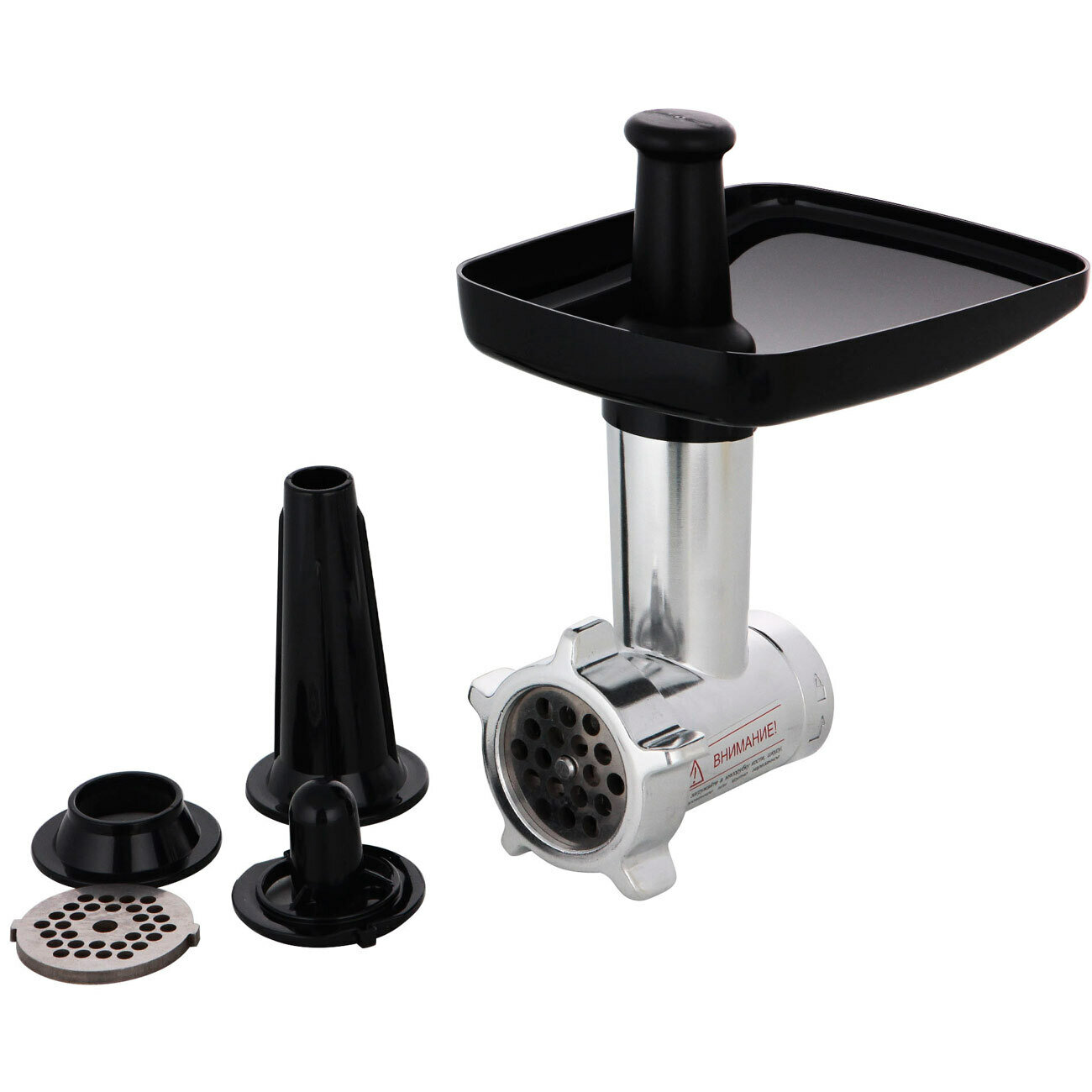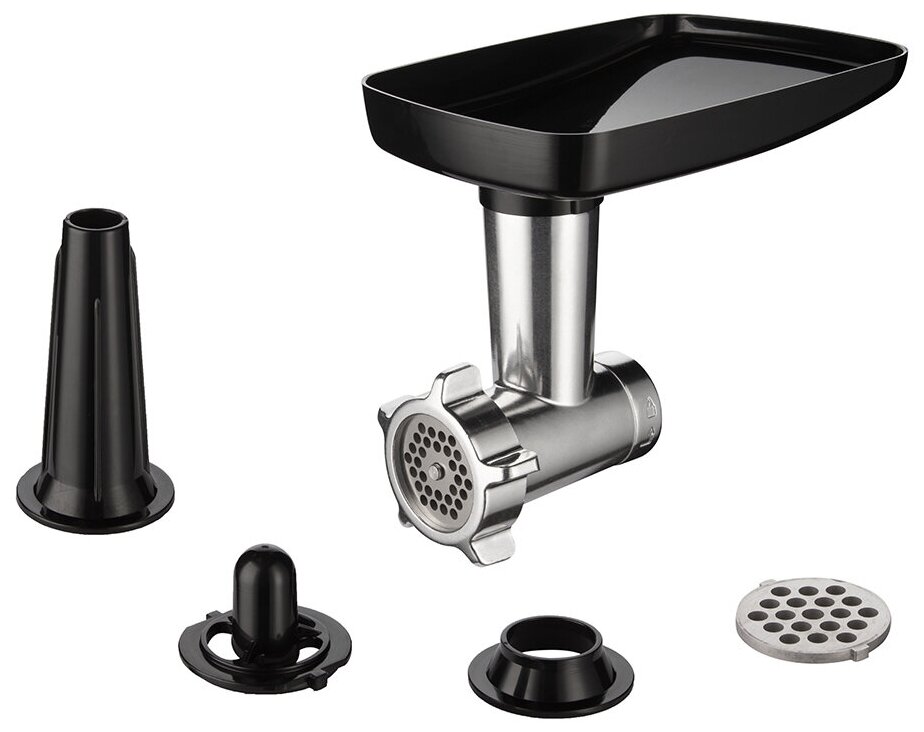 | Комплектация | насадка для приготовления колбасок, загрузочный лоток, основание насадки для кеббе и колбасок, толкатель, перфорированные диски для фарша (2 шт.), насадка-мясорубка, насадка для приготовления кеббе |