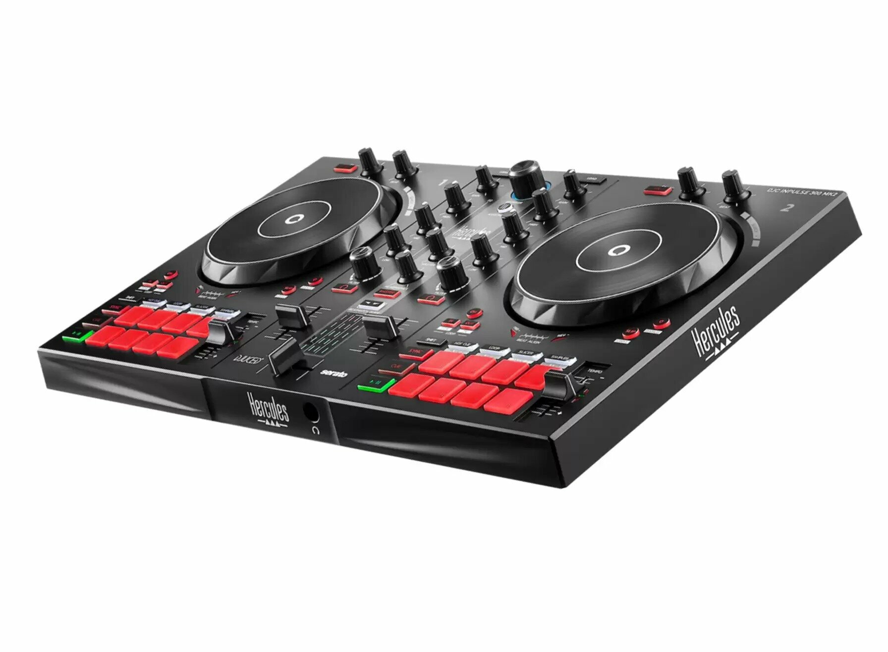 Hercules представляет собой флагманский DJ контроллер для начального уровня. Контроллер позволяет практиковать навыки прослушивания и поможет научиться битмэтчингу, благодаря интуитивному гайду. Он дает подсказки диджею и заключается в подсветке джогов и фейдеров. Это поможет для освоения азов сведения начинающему диджею. DJControl Inpulse 300 предлагает все необходимое для совершенствования навыков смешивания: 16 пэдов, 8 режимов, большое джог колесо, эффекты, такие же как у профессиональных контроллеров и многое другое. Устройство оснащено трехполосными эквалайзерами с фильтрами и регуляторами усиления на канал. Каждый канал имеет регулятор FX и регулятор Dry / Wet плюс кнопку включения / выключения FX. Передняя часть устройства имеет гнездо для наушников 1/8 ", а на задней панели расположены главные выходы RCA, гнездо для “Hercules Add-On” и разъем USB для подключения ноутбука. Inpulse 300 поставляется с USB-кабелем в оплетке - приятный к прикосновению, учитывая, что почти все контроллеры DJ поставляются с обычным пластиковым кабелем.