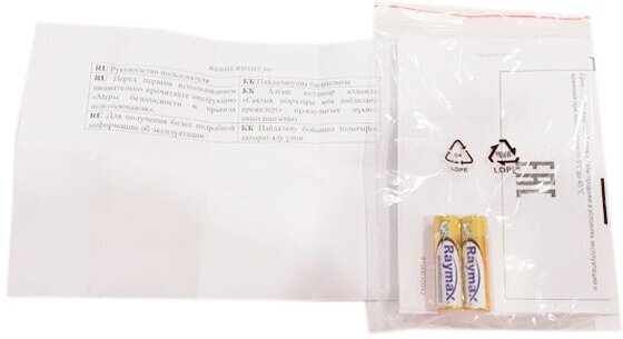 | Типоразмер батарейки | AA (R6, LR6, FR6, MN1500, MX1500) (2 шт) |