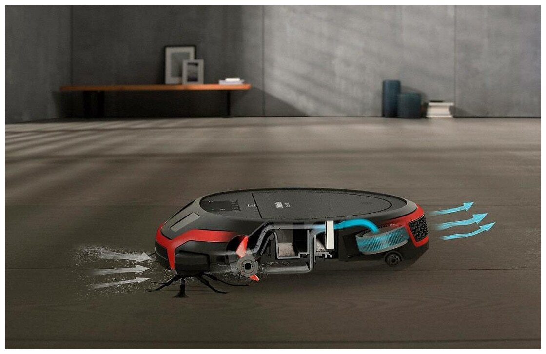 Такой пылесос считается умной техникой, то есть он сам определяет, есть ли перед ним препятствие, сам убирает грязь и пыль с пола с помощью щеток, даже сам приезжает на зарядное устройство. Заряжается где-то 2,5 часа, зато работает около часа, соответственно, за время одного запуска он может убрать всю нашу квартиру. Пульт дистанционного управления работает на батарейках, поэтому даже не обязательно подходить к технике, чтобы ее заставить работать. Есть индикация заполнения пылесборника, поэтому достаточно просто отследить, когда контейнер наполнился грязью, чтобы его почистить. Запускаю робота 3 раза в неделю, этого хватает, чтобы поддерживать квартиру в приличном виде.