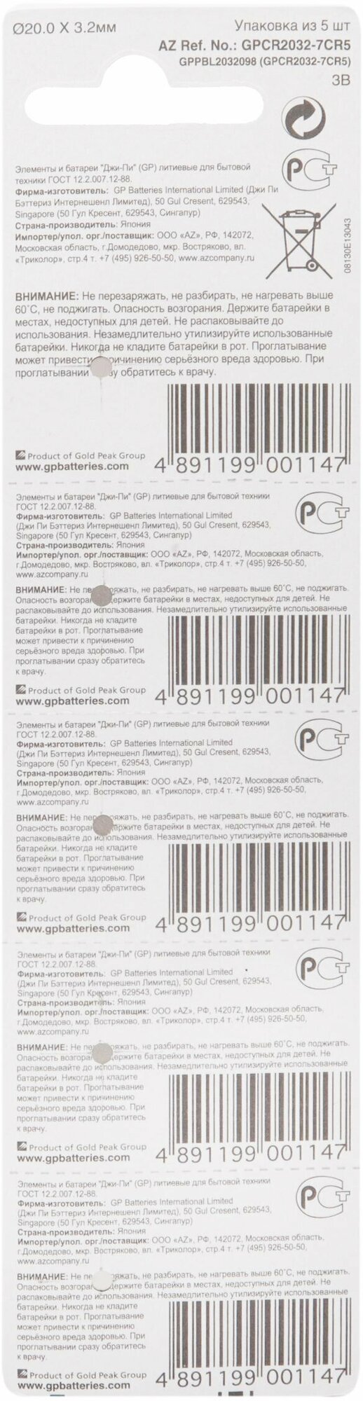 Батарейки GP Lithium CR2032 5 шт GPCR2032-7CR5