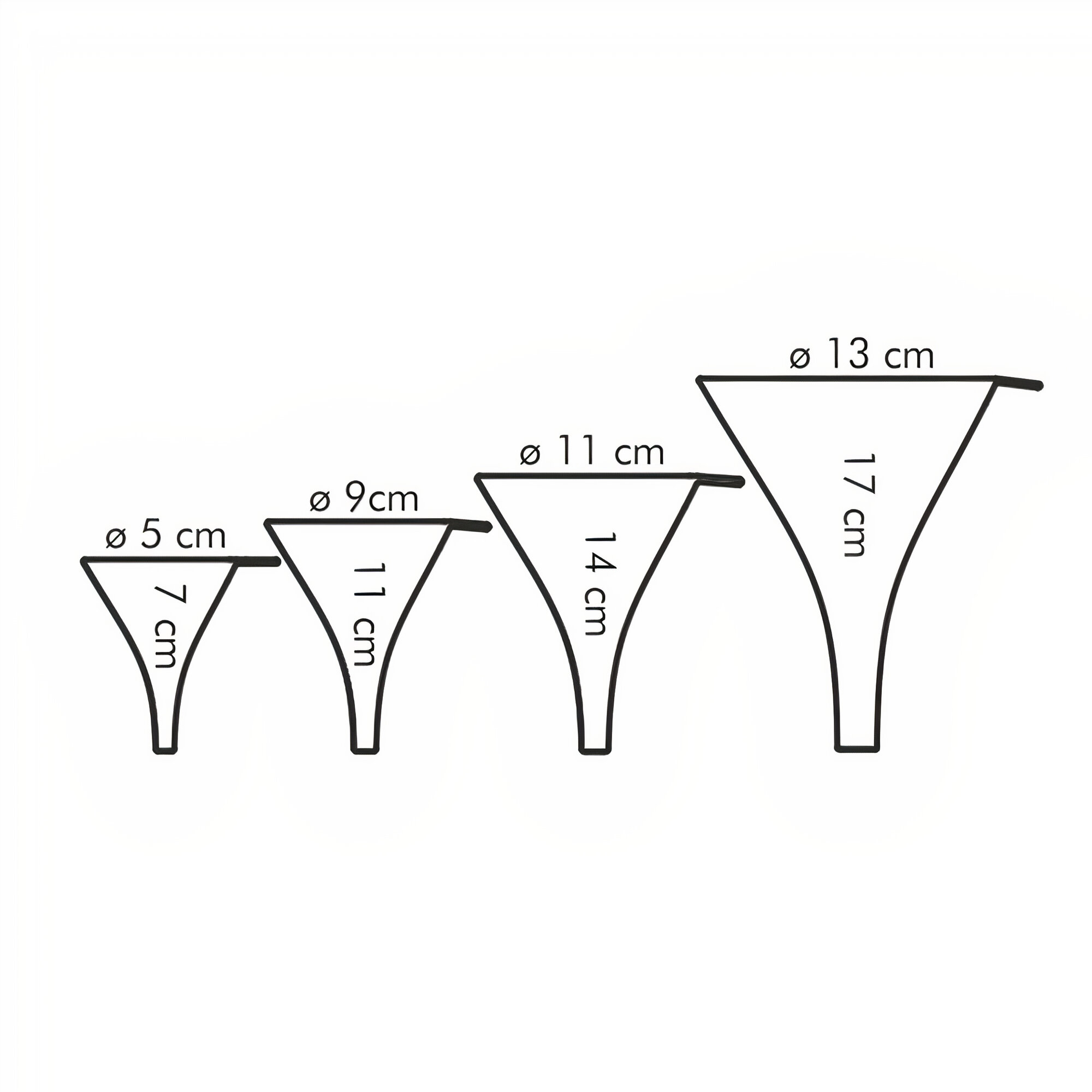 Прекрасно подходят для заливки и процеживания жидкостей в малые и большие емкости, оснащены универсальным ситом, которое не забивается и подходит для всех четырех воронок. Благодаря треугольной форме воронки не катаются по столу. Изготовлены из первоклассной стойкой пластмассы, пригодны для посудомоечной машины.