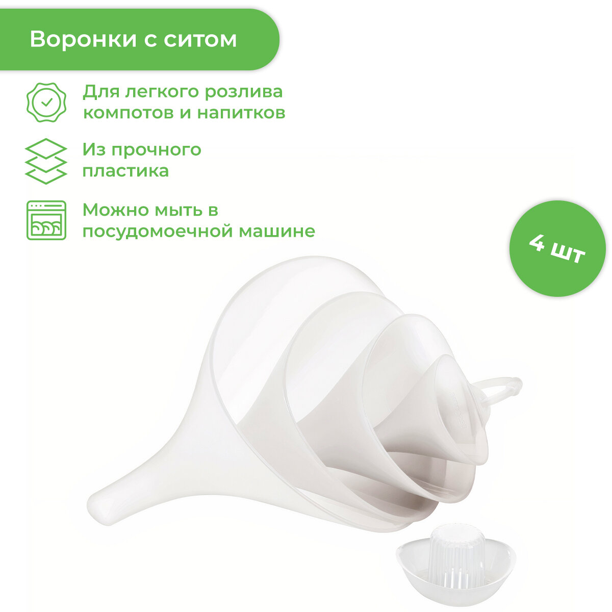 | Комплектация | воронка с ситом - 4 шт |