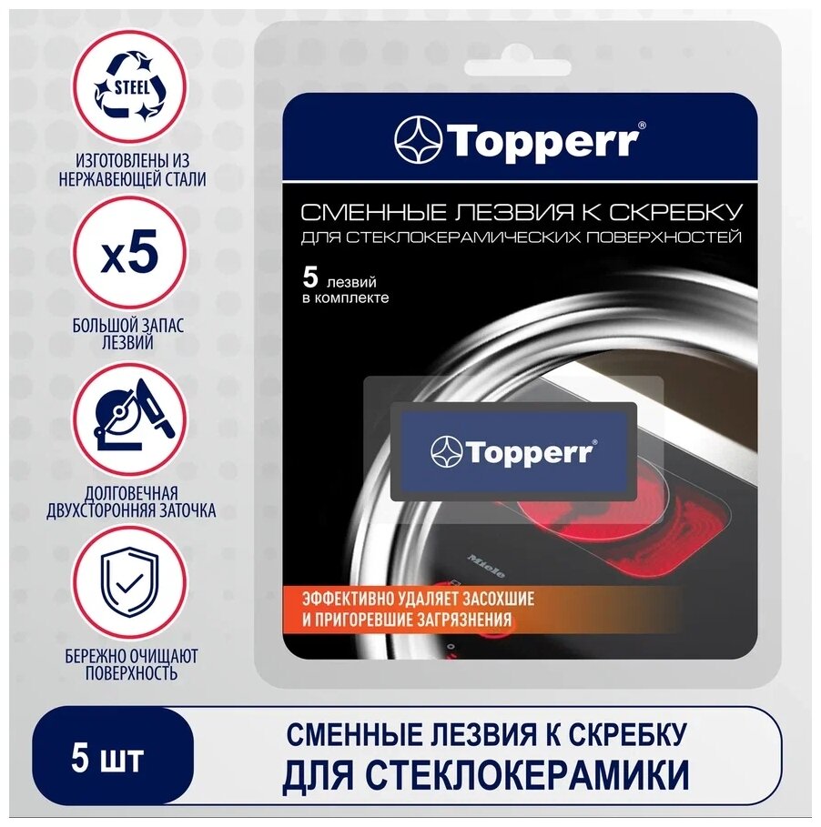 Сервис сравнения цен СкидкаГИД предлагает сравнить цены на товар «Комплект сменных лезвий к скребку для стеклокерамики Topperr SC2, 5 шт»