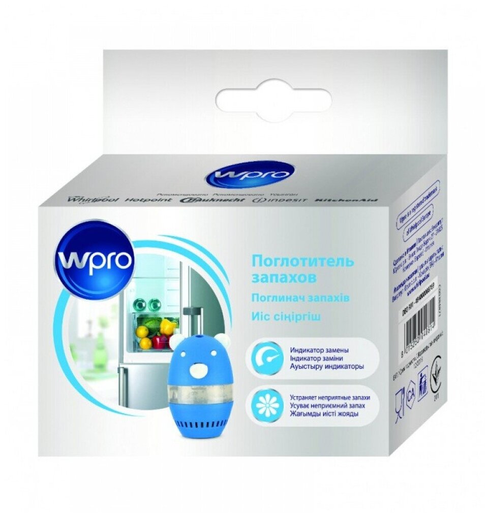 Нейтрализатор запахов WPRO DEOR01 удаляет все неприятные запахи в холодильнике и в морозильной камере (в том числе запах рыбы, сыра, лука). Абсолютно безвреден и не имеет запаха. Не воздействует на вкусовые качества еды. Благодаря оригинальной и удобной форме помещается в любое место холодильника.