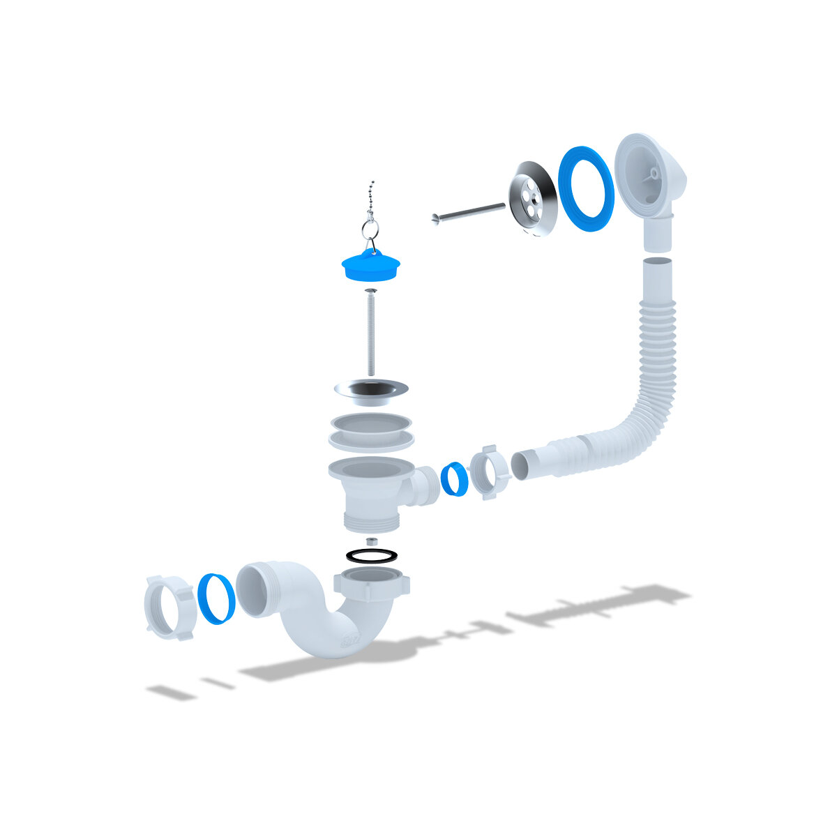 - Сборка бутылочного сифона А-40092 для одно/разноуровневой нержавеющей двойной мойки 3 1/2’’