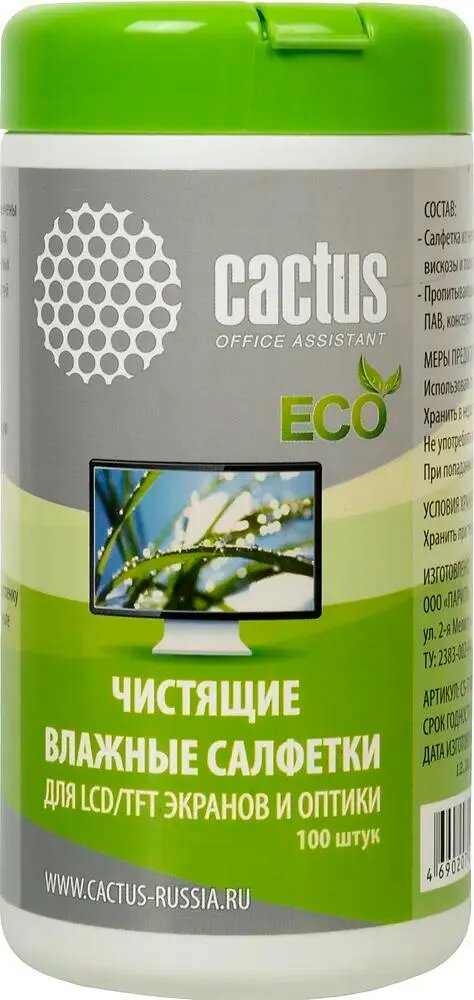 Чистящие салфетки Cactus CS-T1001E, 100 шт