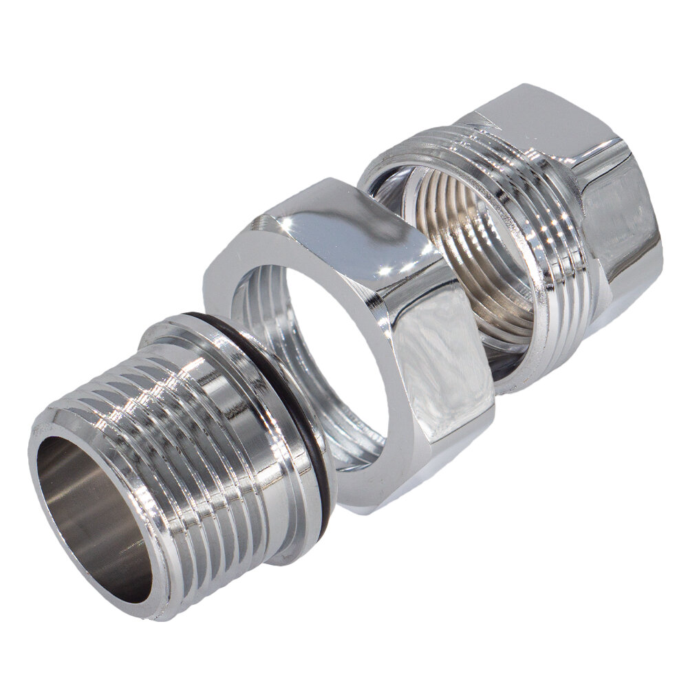 Предназначен для создания разъемного соединения между полотенцесушителем и водопроводными сетями в прямой плоскости. Данное соединения позволяет провести демонтаж полотенцесушителя, без вмешательства в имеющееся соединение между трубой и сгоном. Хромированное покрытие обеспечивает антикоррозийную защиту и гарантирует эстетический вид соединения.