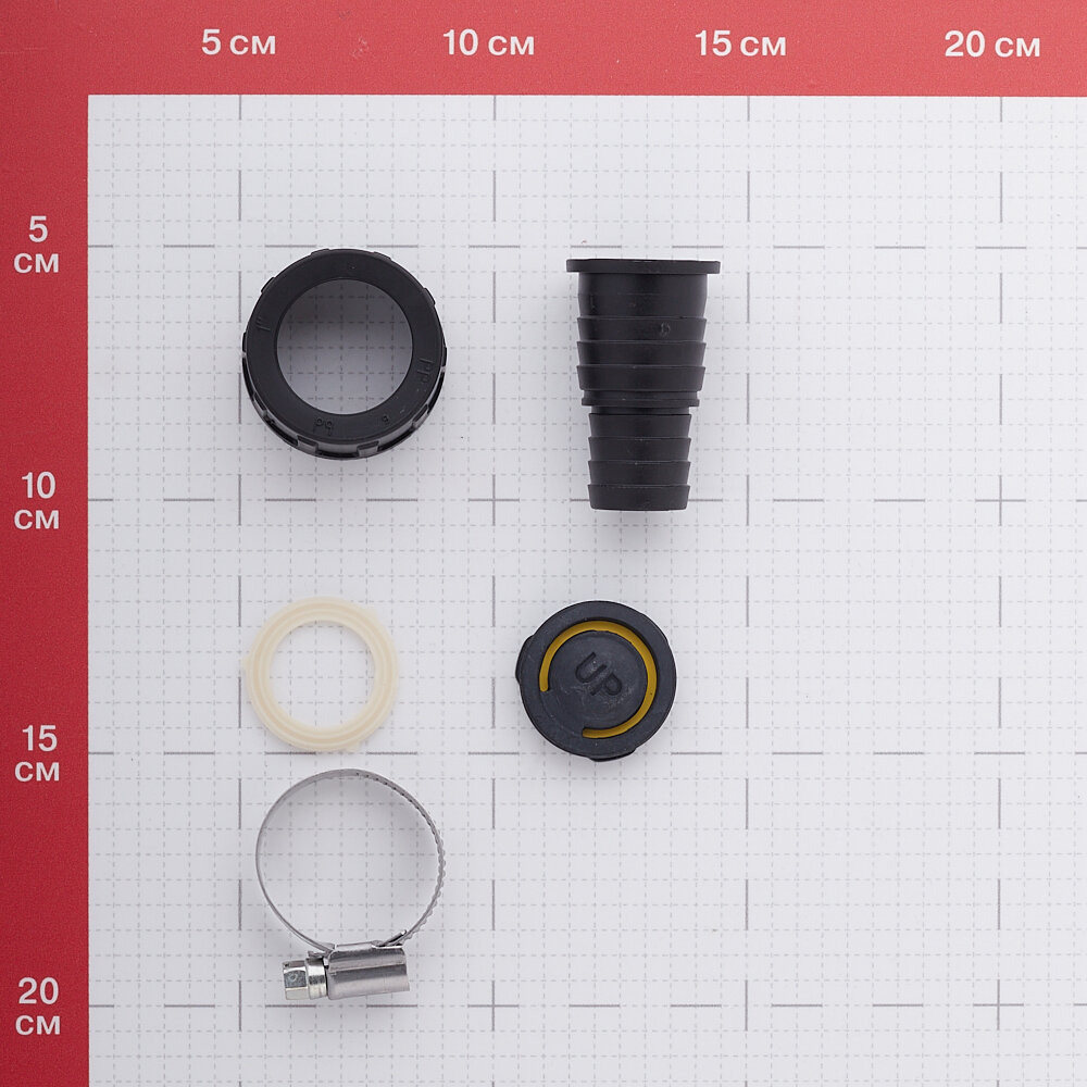 Кроме того, изделие оснащено спиральной резьбой, которая обеспечивает надежное крепление. Дополнительно в комплект входит прокладка и хомут, которые позволяют быстро и легко присоединить шланг к насосу.