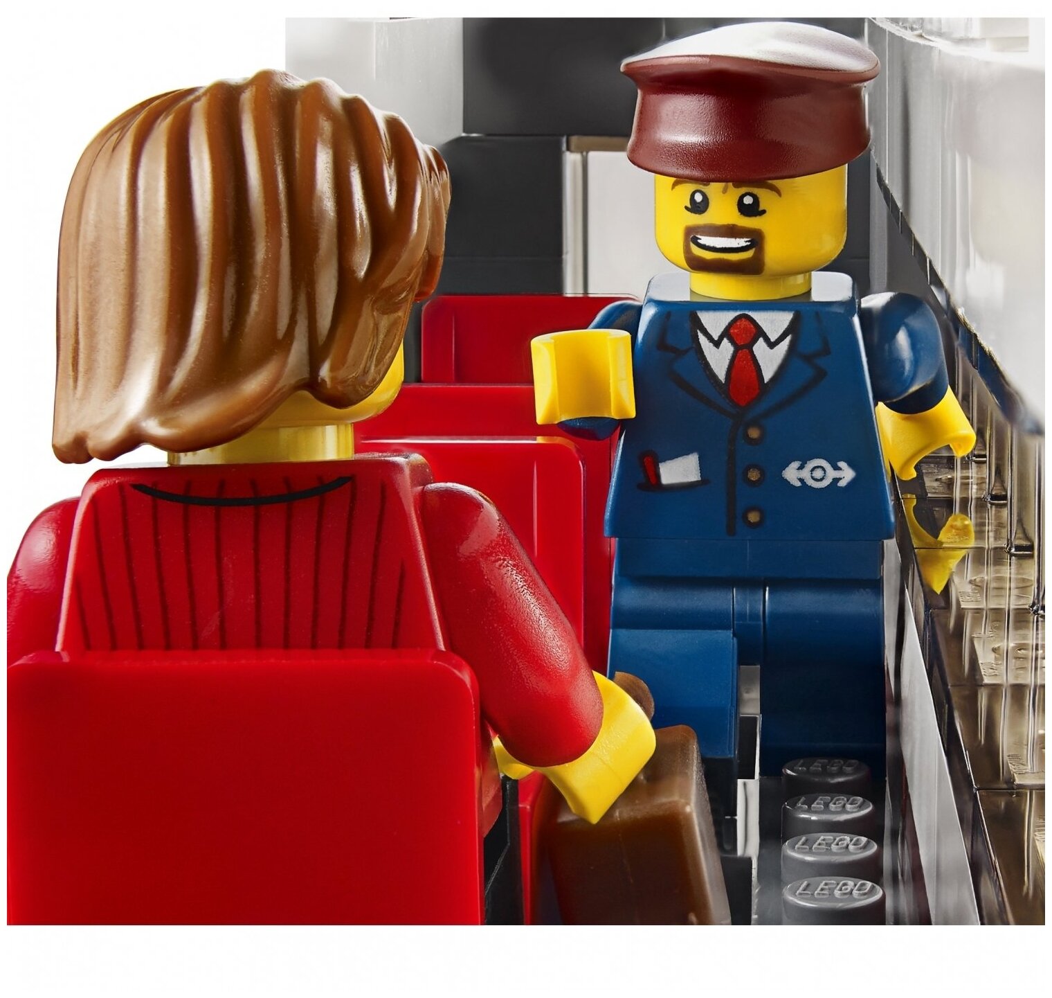 Модель скоростного поезда состоит из трёх вагонов белого цвета. Для улучшения аэродинамики на концах поезда установлены новые ветровые стёкла и закруглённые элементы, придающие корпусу вытянутый вид. В первом вагоне оборудована кабина водителя с панорамным стеклом и приборной панелью. За ней есть место для подключения активных элементов Power Functions. Мощный мотор, соединённый с батарейным отсеком и переключателем полярности, позволит поезду двигаться в любом направлении. Во втором вагоне располагаются места для пассажиров. Благодаря съёмным крышам, можно заглянуть внутрь вагона и рассмотреть уютные красные кресла и столики.