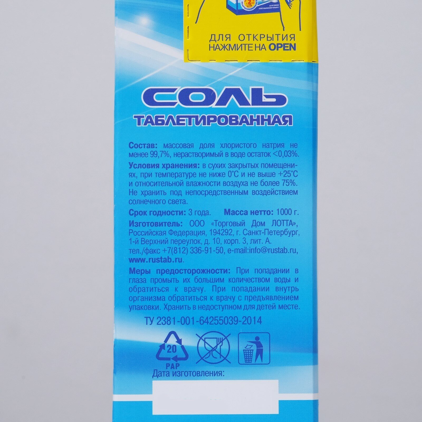 Тип товара: Соль для посудомоечных машин