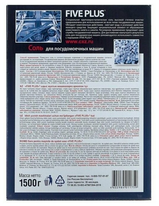 Сервис сравнения цен СкидкаГИД предлагает сравнить цены на товар «Cоль для посудомоечных машин Five Plus 1,5 кг (9628)»