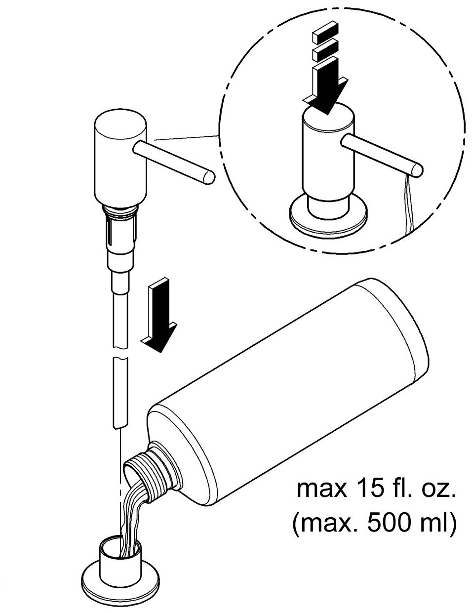 | Особенности, совместимость | Встраиваемый в столешницу. Заправка средством происходит без откручивания ёмкости. Емкость для мыла 500 мл. |