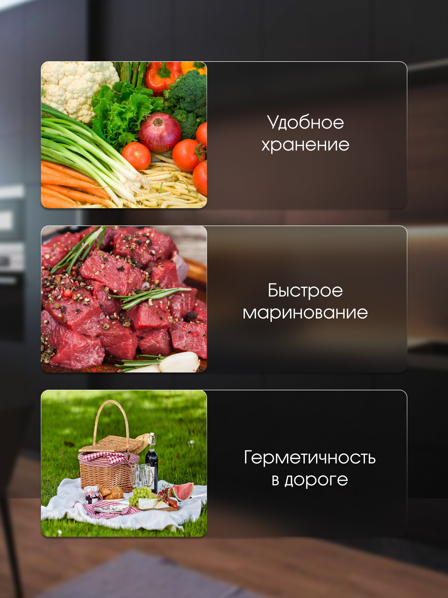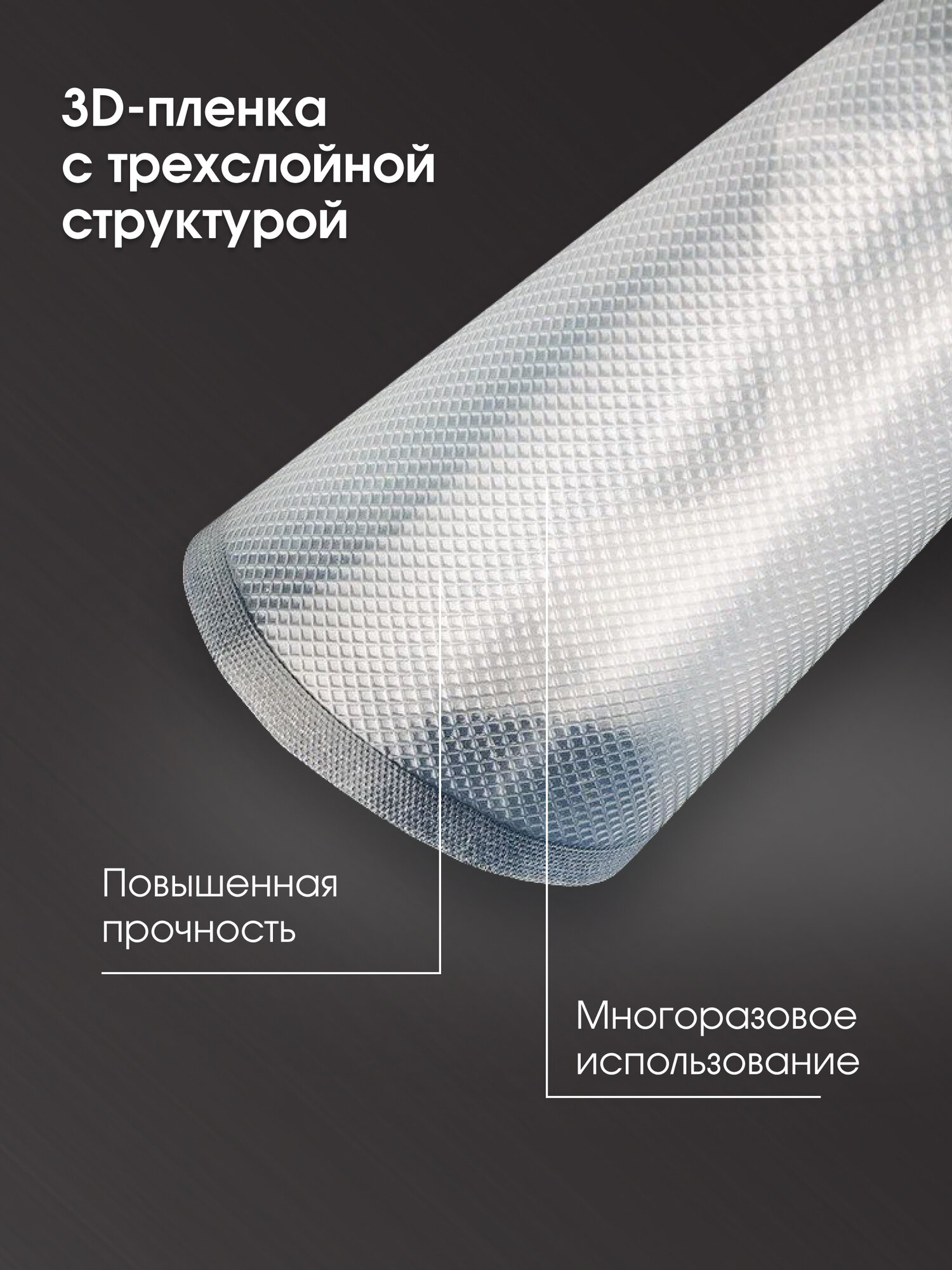 Для хранения, приготовления, заморозки. Для пищевых продуктов – не содержит BPA! 3D-пленка с объемной трехслойной структурой повышенной прочности. Многоразовое использование.