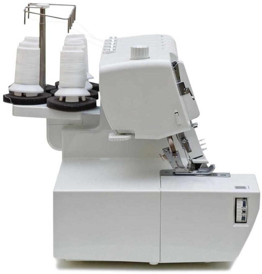 Коверлок оснащен новой системой управления строчками, благодаря чему длина строчки плавно регулируется в диапазоне от 0,5 до 4 мм, а ширина от 3 до 9 мм. Дифференциальное продвижение ткани можно регулировать от 0,5 до 2. Машина оснащена 5-ти уровневой системой регулирования давления лапки на ткань, что позволит Вам точно настроить машину на выполнение необходимого шва.
