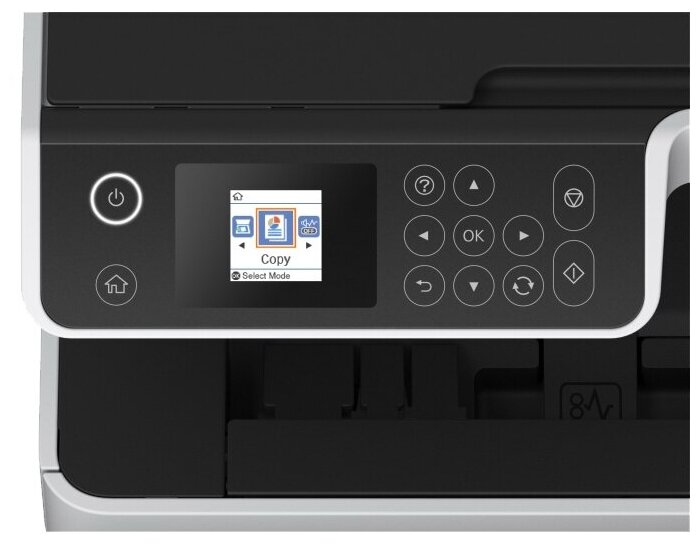 Я сравнивал эту модель с Epson M205 и M200 (на них есть автоподатчик оригиналов и штатный сетевой адаптер, беспроводной в одной модели и проводной в другой), но выбрал именно эту. Он оснащен дуплексом, у него выше разрешение и больше заявленная скорость печати (это факт, я проверял), больше вместимость обоих лотков. По габаритам: этот мфу занимает гораздо меньше места, чем его собратья. И наконец есть отличный цветной дисплей (наконец-то!), который ну прям очень удобный.