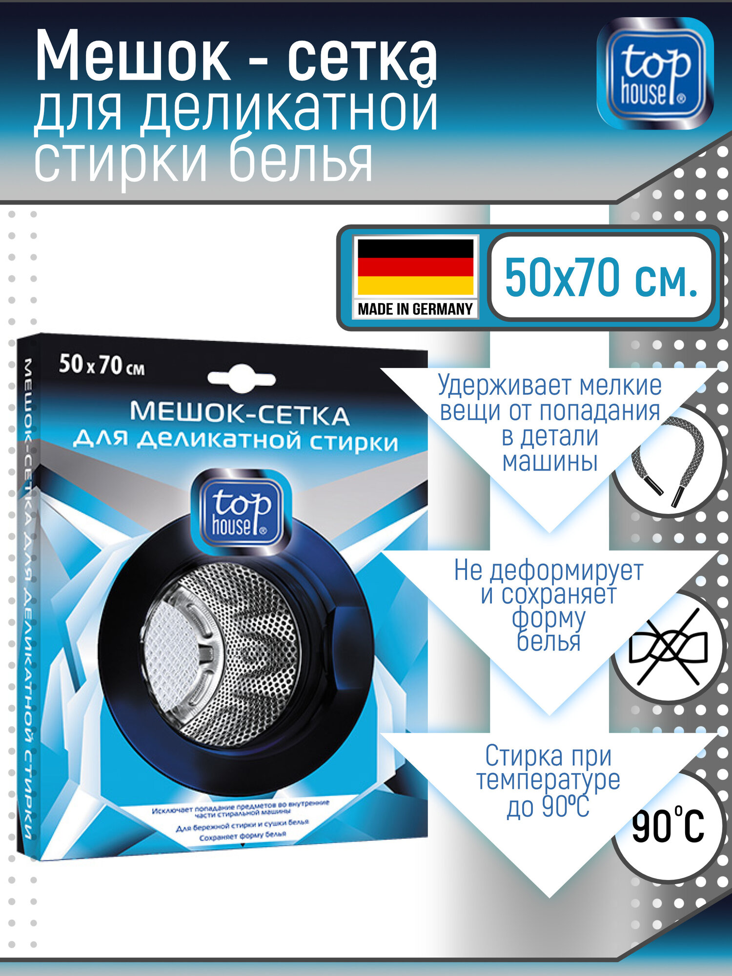 Термостойкий мешок-сетка TOP HOUSE разработан по новейшей технологии и изготовлен в Германии с учетом рекомендаций ведущих производителей стиральных машин. Предназначен для бережной стирки, отжима и сушки деликатных и трикотажных изделий, тюля и гардин, любых мелких вещей в автоматических стиральных машинах при температуре от 30 до 90 °С.