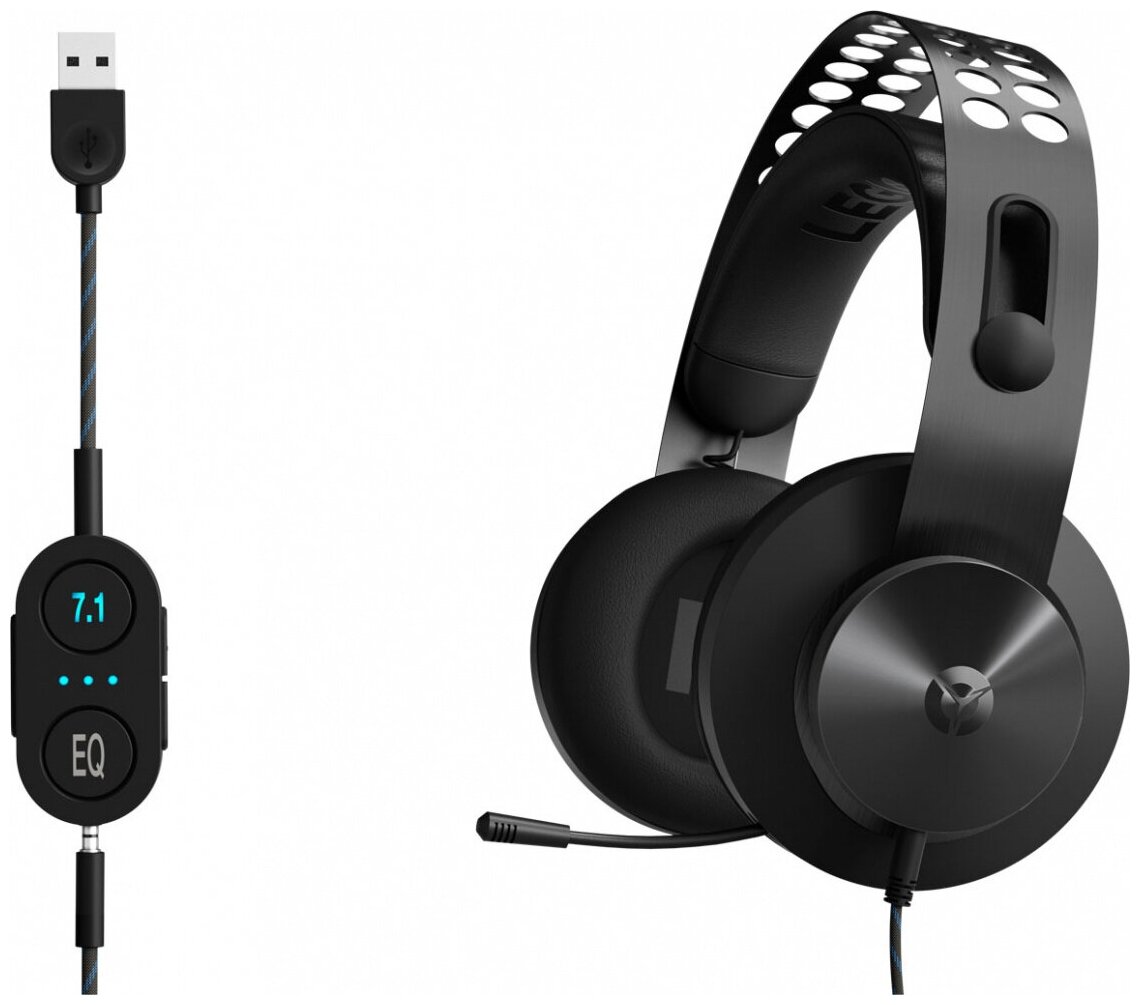 Проводные наушники LenovoLegion H500 Pro выполнены в форме охватывающей конструкции, предназначены для игры, формат звуковой схемы составляет 7.1. Наушники выполнены из металла, обладают черным цветом и регулируемым оголовьем, что позволяет подобрать его размер под параметры каждого пользователя. Устройство характеризуется закрытым акустическим оформлением, диапазоном частоты от 20 до 20000 Гц, мощностью 50 мВт, сопротивлением 32. LenovoLegion H500 Pro оснащены регулятором громкости, подвижным микрофоном, который может принимать все направления для удобства эксплуатации, наделен функцией шумоподавления. Соединение происходит с помощью разъемов USB, jack 3.5 мм. По обе стороны прибора расположено по одному динамическому излучателю. Подсветки, переходника, системы шумоподавления, встроенного плеера нет. В комплект входит дополнительный кабель соединительный jack 3.5 мм на USB, аудиокабель с пультом управления, переходника нет.