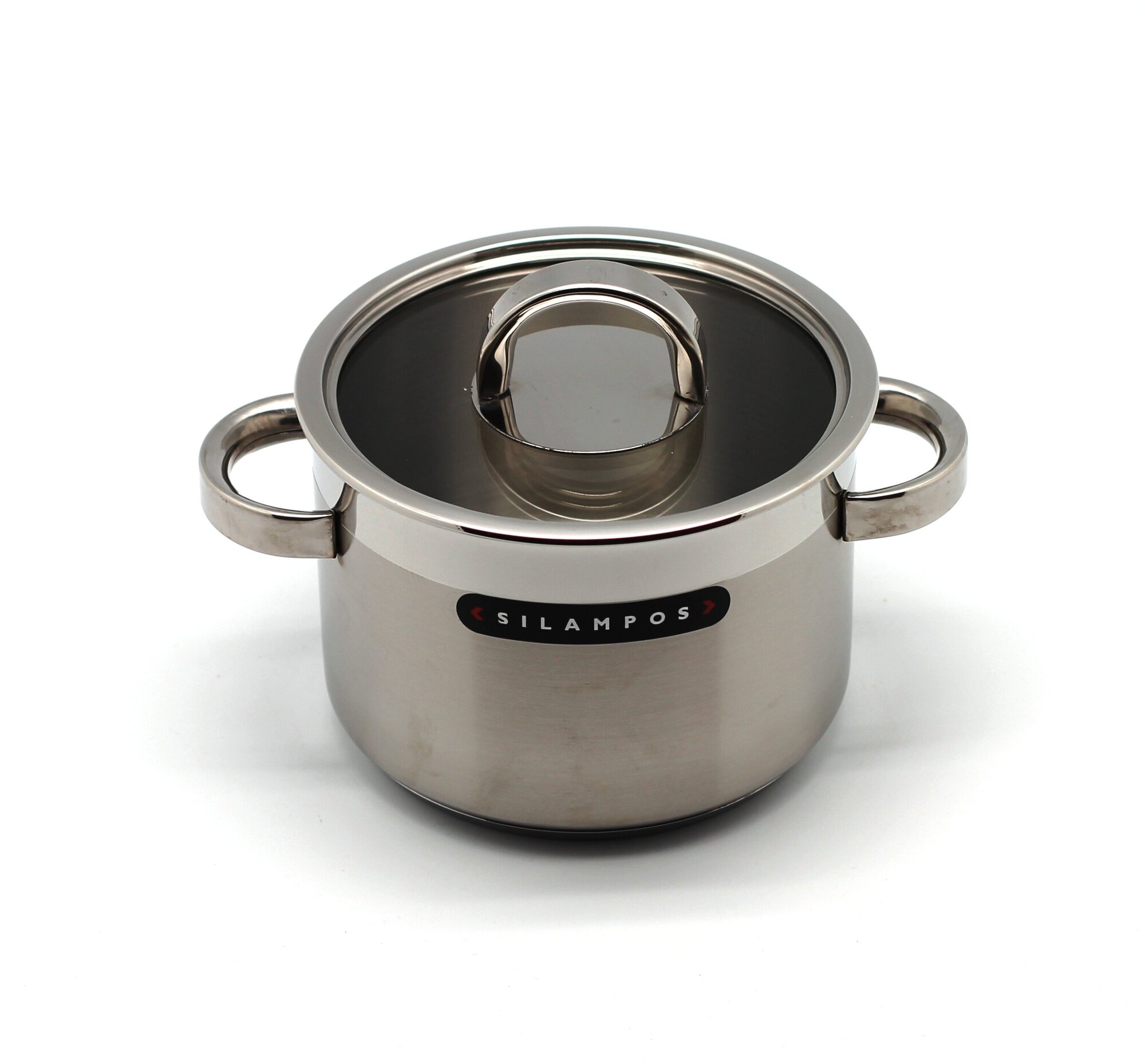 Нержавеющая сталь 18/10, толщина стенок 0,7-0,8 мм, теплораспределительный алюминиевый диск "impact disc" 6,5 мм. Подходит для всех видов плит, включая индукционные.