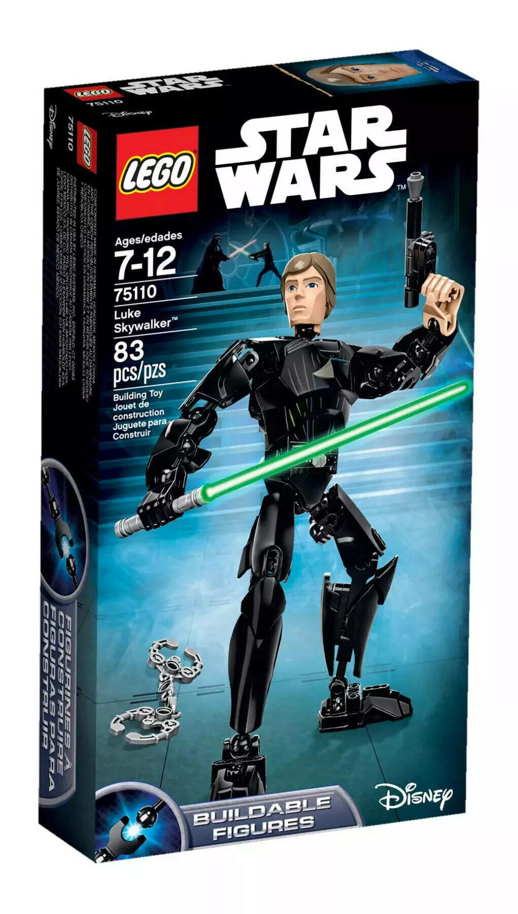 Люк Скайуокер – один из самых популярных и любимых персонажей киносаги «Звездные войны». По этой причине именитая компания LEGO не смогла обойти этот факт стороной и дополнила свою линейку уникальным конструктором LEGO Constraction Star Wars Luke Skywalker 75110. Такая игрушка будет хорошим презентом на любое детское мероприятие.Купить этот набор своему сынишке стоит из-за, во-первых, качественных материалов изготовления, окрашенных нетоксичными красителями, безвредными для здоровья ребенка; во-вторых, ? отличного дизайна, детализации игрушки; в-третьих, ? лояльной стоимости.Особенности игрушкиНабор Luke Skywalker состоит из 83 прочных деталей и позволяет создать героя Люка Скайуокера, имеющего следующие преимущества:жестко фиксируется в разнообразных боевых стойках;обладает подвижными конечностями;сокрушает врагов с помощью лазерного пистолета, светового меча (идут в комплектации).Благодаря плодотворному процессу сборки Люк Скайуокер станет излюбленной игрушкой малыша, что положительно скажется на развитии мелкой моторики, фантазии, логики и других полезных качеств. Предназначается конструктор мальчику возрастом от 7 лет.