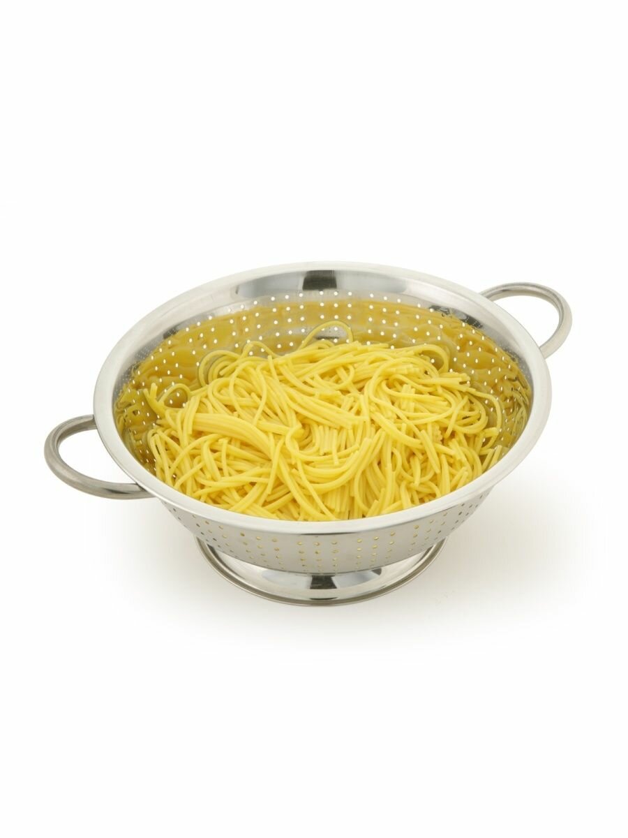 Дуршлаг Tescoma GrandCHEF с подставкой, диаметр 28 cм 428514 предназначен для промывки круп, фруктов или овощей. Не ржавеет, поэтому практичен в использовании. Благодаря высокой прочности прослужит долго. Дуршлаг легко моется, что экономит время и силы.