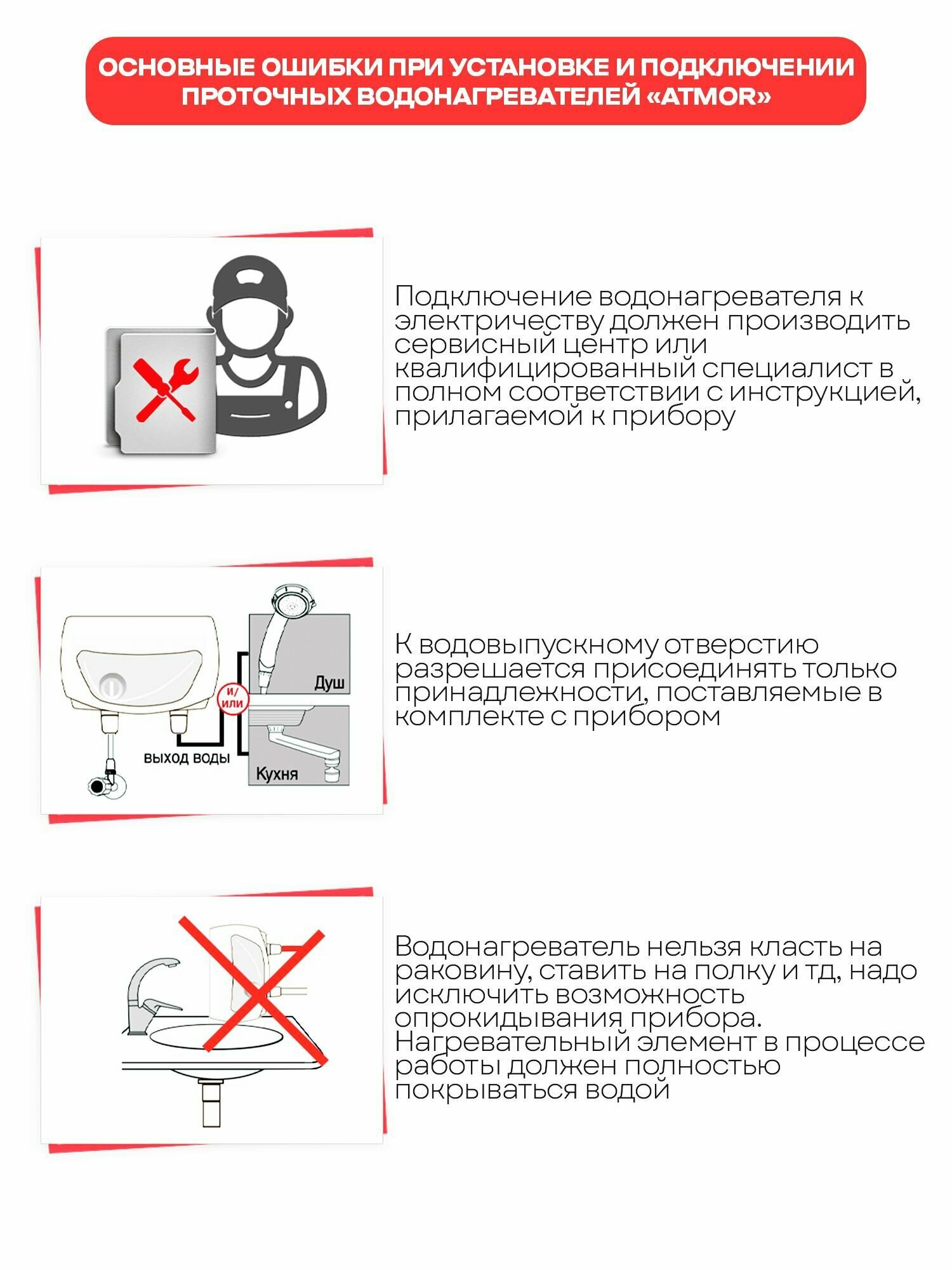 - Водонагреватель проточный Atmor TAP 3кВт для кухни