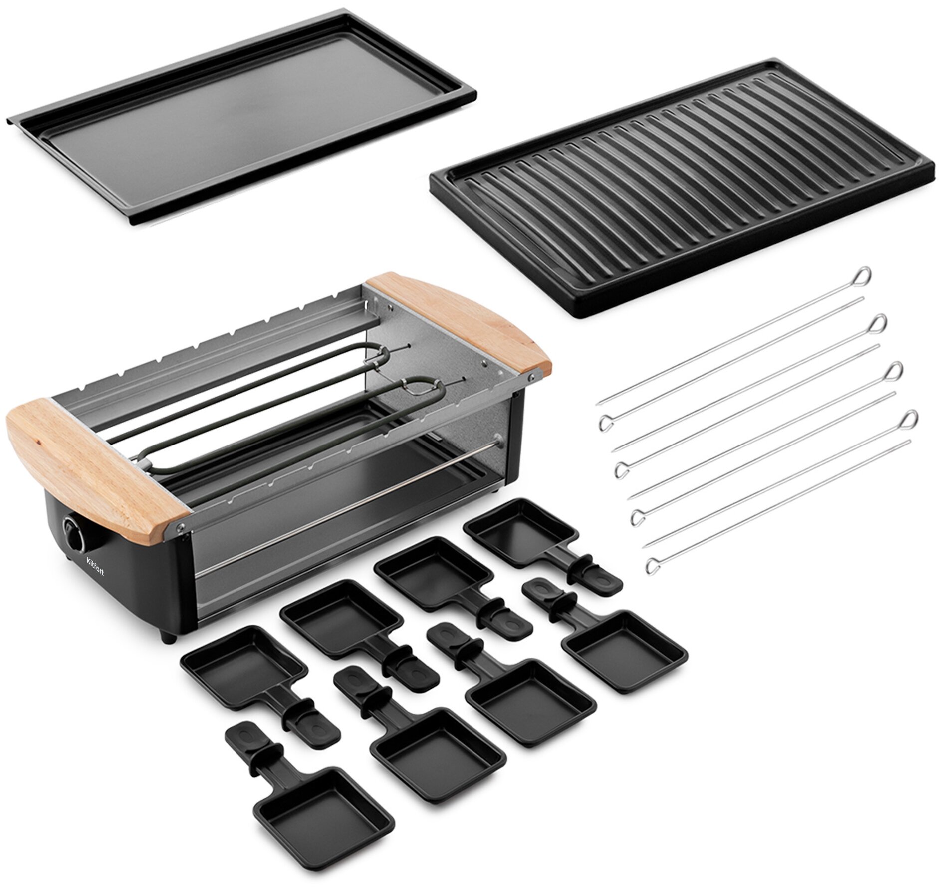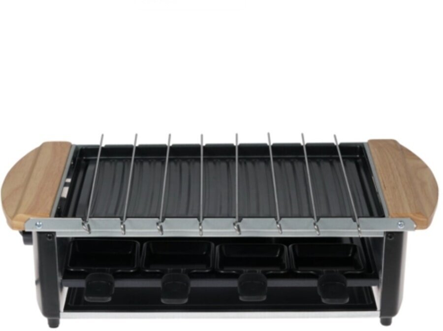 | Особенности | плавная регулировка нагрева, размер дна порционной сковородки 7 х 7 см, длина шнура 1 м, 8 сковородок для раклет, 8 шампуров |