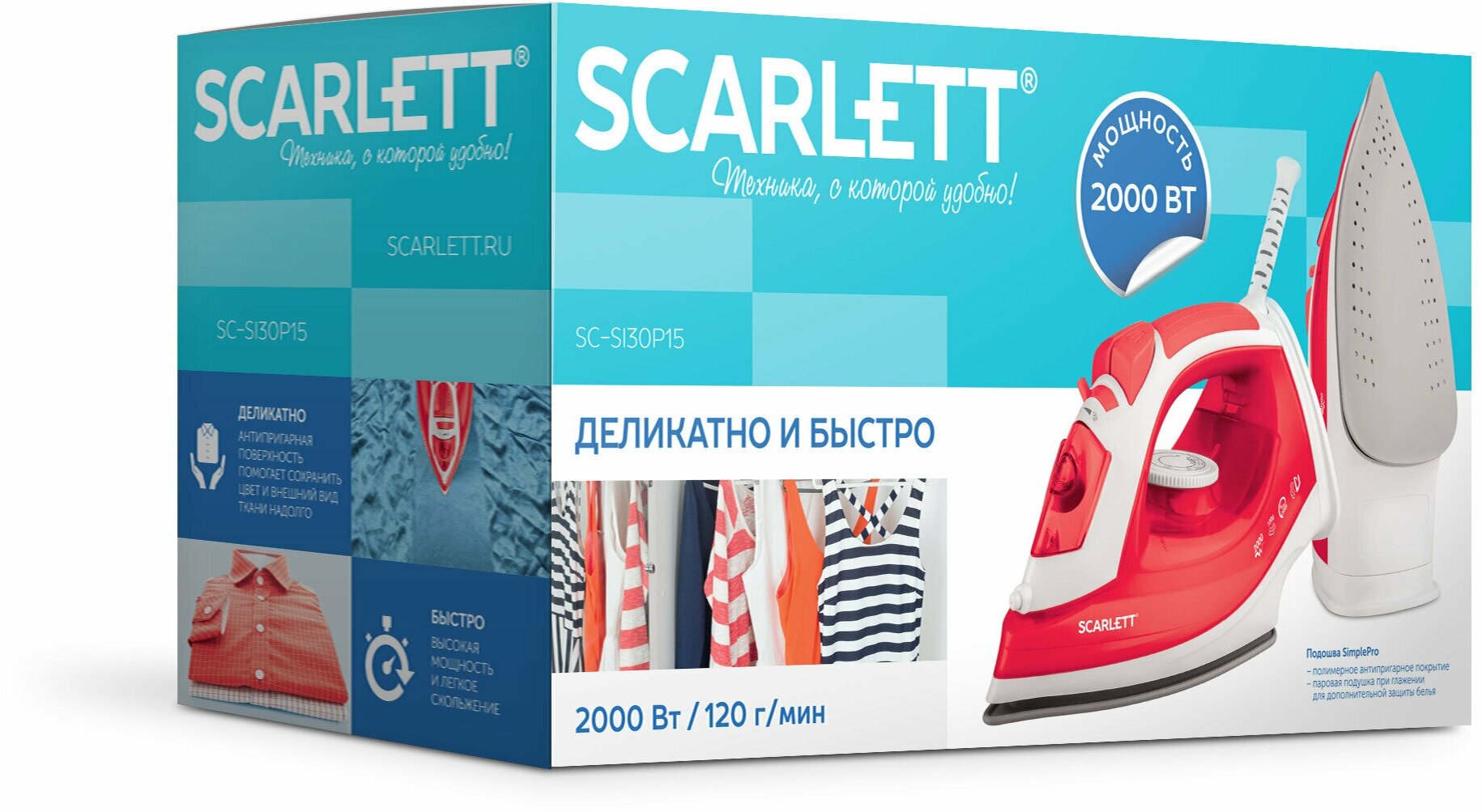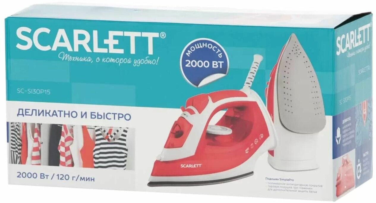 Основное преимущество утюга Scarlett заключается в его мощности и эффективности. Скорость подачи пара составляет 40 г/мин, что позволяет легко и быстро разгладить складки на одежде. Паровой удар мощностью 120 г/мин дополнительно усиливает процесс глажки, делая его более эффективным.