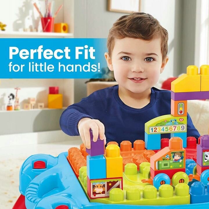 Учитесь, играйте и исследуйте с набором Столик для игр и обучения от Mega Bloks! Этот полностью портативный, удобный столик является отличной платформой, с которой ваш ребенок может начать обучение в ходе независимых игр и интерактивного исследования. Используя входящие в набор блоки First Builders, ваш ребенок может строить прямо на столе, создавая практически все, что можно придумать. Собирайте и складывайте детали на включенных в набор колесных базах, а также используйте настольный трек, чтобы ездить по кругу и получать еще больше удовольствия! Столик для игр и обучения от Mega Bloks идеально подходит для семейных поездок. Он складывается для легкого транспортировки и имеет внутреннее отделение для хранение блоков. Портативный складной строительный комплект-столик. 20 блоков First Builders и две колесных базы. Настольный трек для колесных конструкций. Удобно для маленьких детских рук.