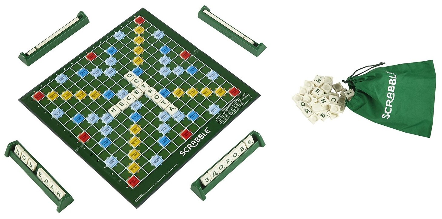 Умная игра в слова, в России известная под названием «Эрудит». Составляйте на игровом поле слова по принципу кроссворда. Каждая клетка поля и каждая фишка с буквой принесут вам определённое количество очков. Отличное качество игрового поля, приятные на ощупь фишки с буквами.