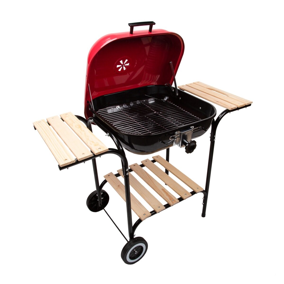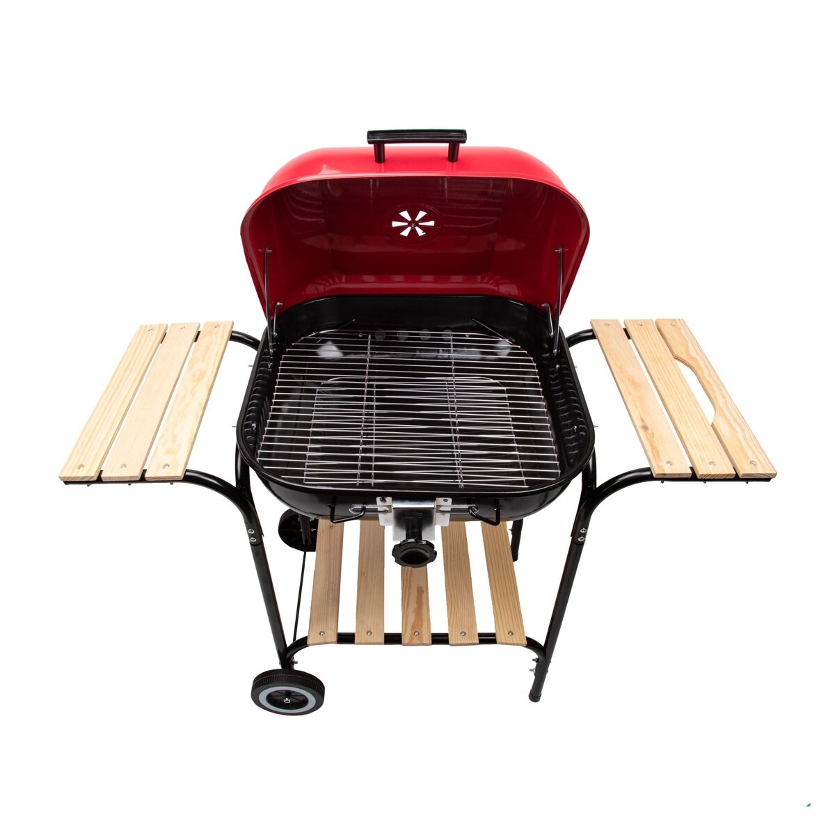 Коптильня- гриль GREEN GLADE (ASK21),производится в прямоугольной форме, из качественных термоустойчивых материалов, с антикоррозийными характеристиками, который отличается хорошей надежность. Крышка гриля окрашена в красный цвет.
