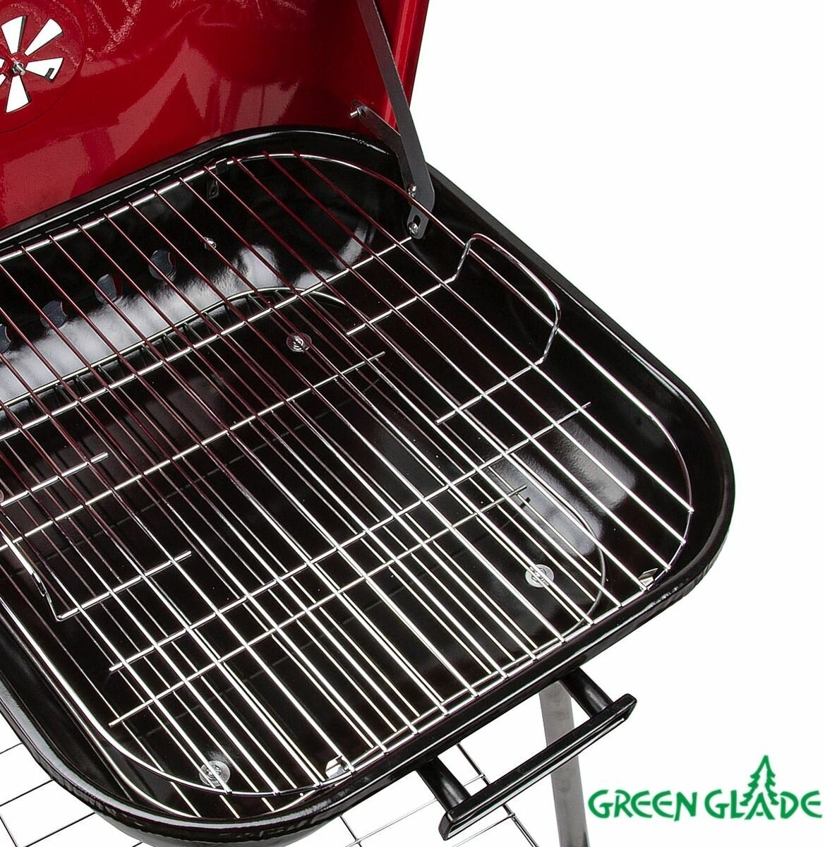 Гриль-коптильня "Green Glade" прямоугольной формы предназначен для проведения отдыха на дачном участке. Ставится на 4 ножки, 2 из которых оснащены колесиками для удобной транспортировки. Для приготовления используется хромированная решетка. Снизу предусмотрена полка. С двумя регулировками подачи воздуха. Размер жарочной поверхности: 45 см х 45 см.