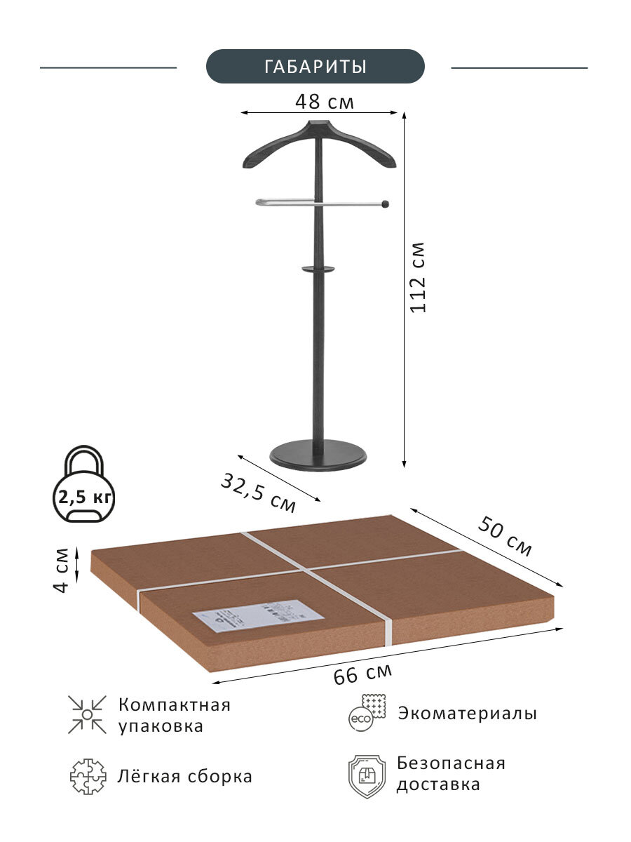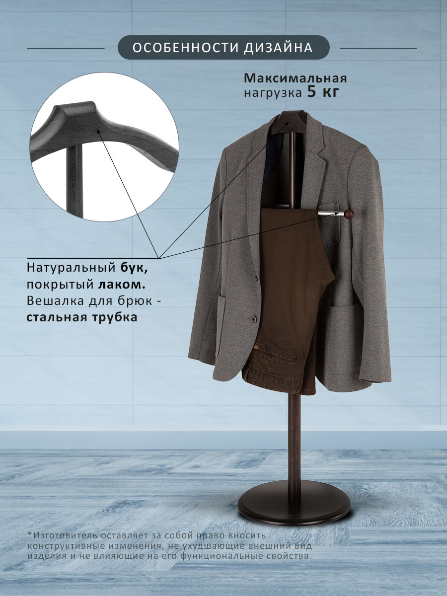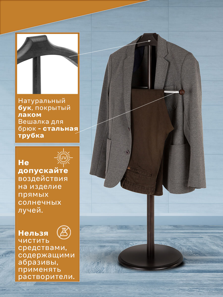 Прочность конструкции: каркас изготовлен из массива бука и металла, что делает эту вешалку прочной и надежной со значительным сроком эксплуатации.