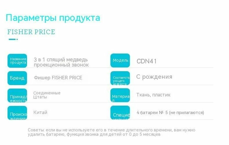 | Состав набора | пульт управления мобилем,музыкальный купол-проектор,дуга с регулятором на 2 положения для крепления мобиля на кроватку и на стол,3 мягких медвежонка в разноцветных костюмчиках с крылышками за спиной, 3 дужки с бабочками и атласными ленточками для крепления к музыкальному куполу. |