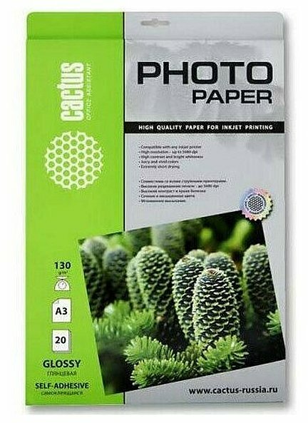 Самоклеящаяся фотобумага Cactus с глянцевым покрытием для струйной печати.