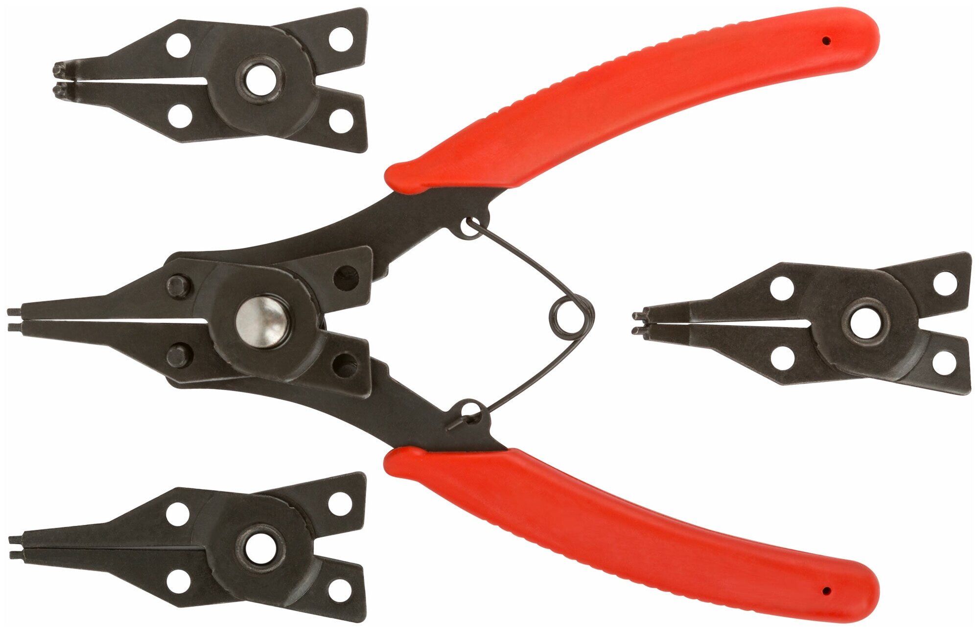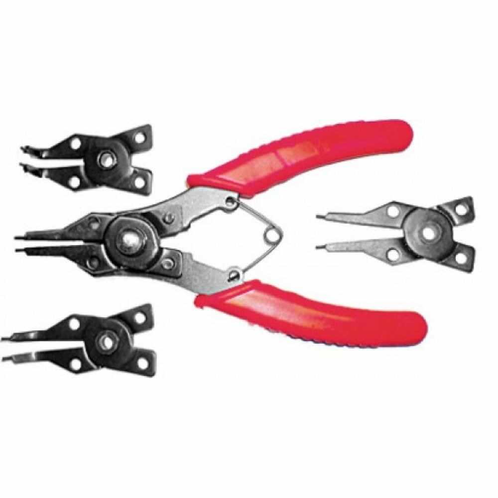 Предназначен для установки и снятия внутренних и внешних стопорных колец. 4 сменные насадки. Материал: усиленная инструментальная сталь. Упаковка: блистер.