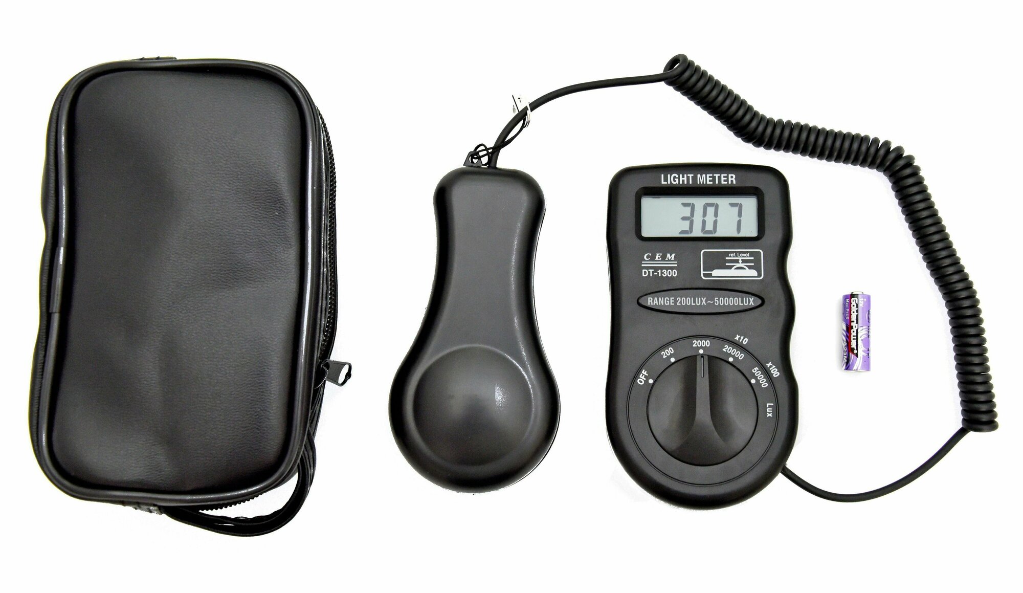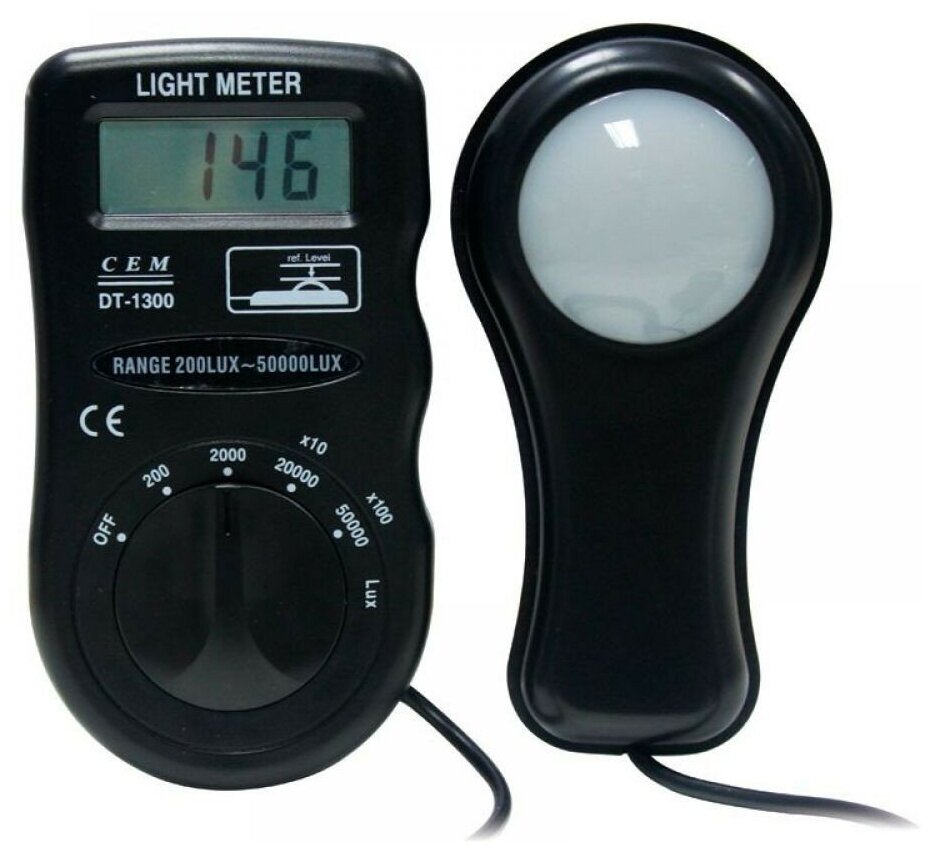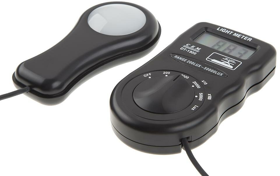 – измерительный прибор высокой точности для определения уровня освещенности помещения. Фотодатчик использует силиконовый фотодиодный фильтр, имеющий хорошую чувствительность. Сам датчик выносной, что дает возможность использовать прибор в труднодоступных местах. Данные измерений в LUX и FC выводятся на дисплей прибора, который имеет автоматическую подсветку при плохой освещенности. Диапазон измерений можно настроить самостоятельно с помощью регулятора на корпусе.Батарейки для автономного питания прибора входят в комплект.