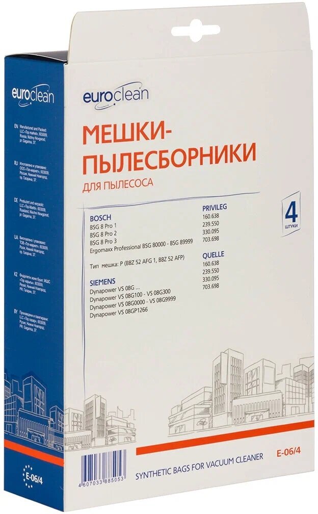 Euro Clean совместим с пылесосами BOSCH, SIEMENS, PRIVILEG, Euro clean, поддерживаемые модели - Typ P.