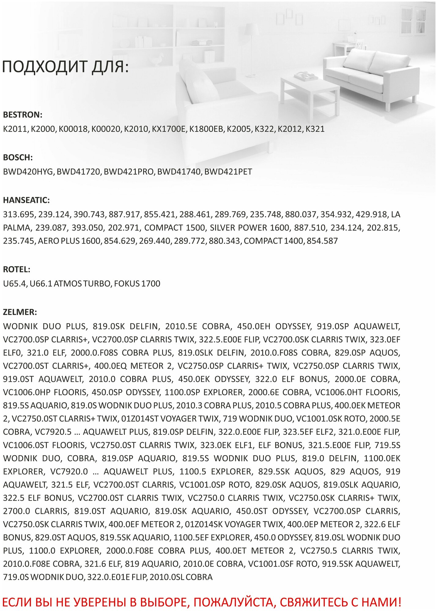 Ozone подходит для пылесосов Zelmer.