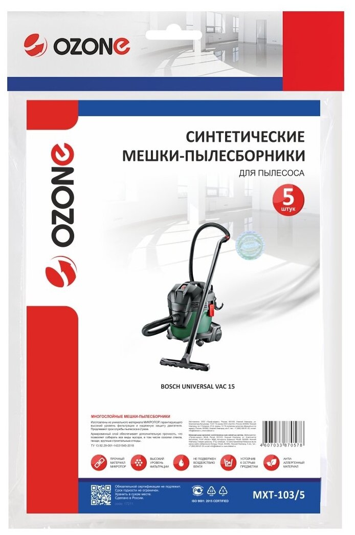 Ozone подходит для пылесосов Bosch UniversalVac 15.