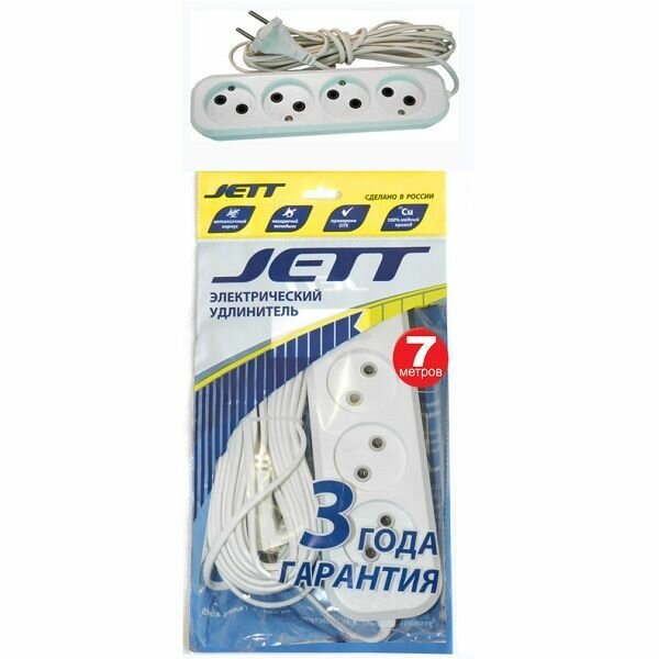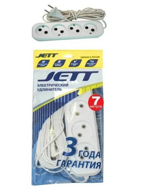 Сервис сравнения цен СкидкаГИД предлагает сравнить цены на товар «Сетевой удлинитель Jett 155-087 РС-4 (провод ШВВП), 7 м»