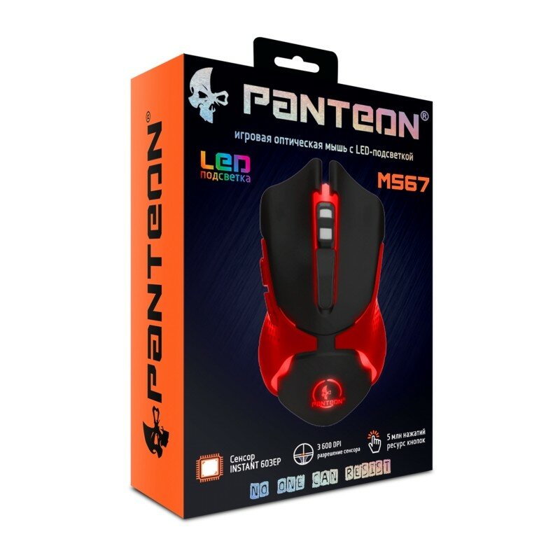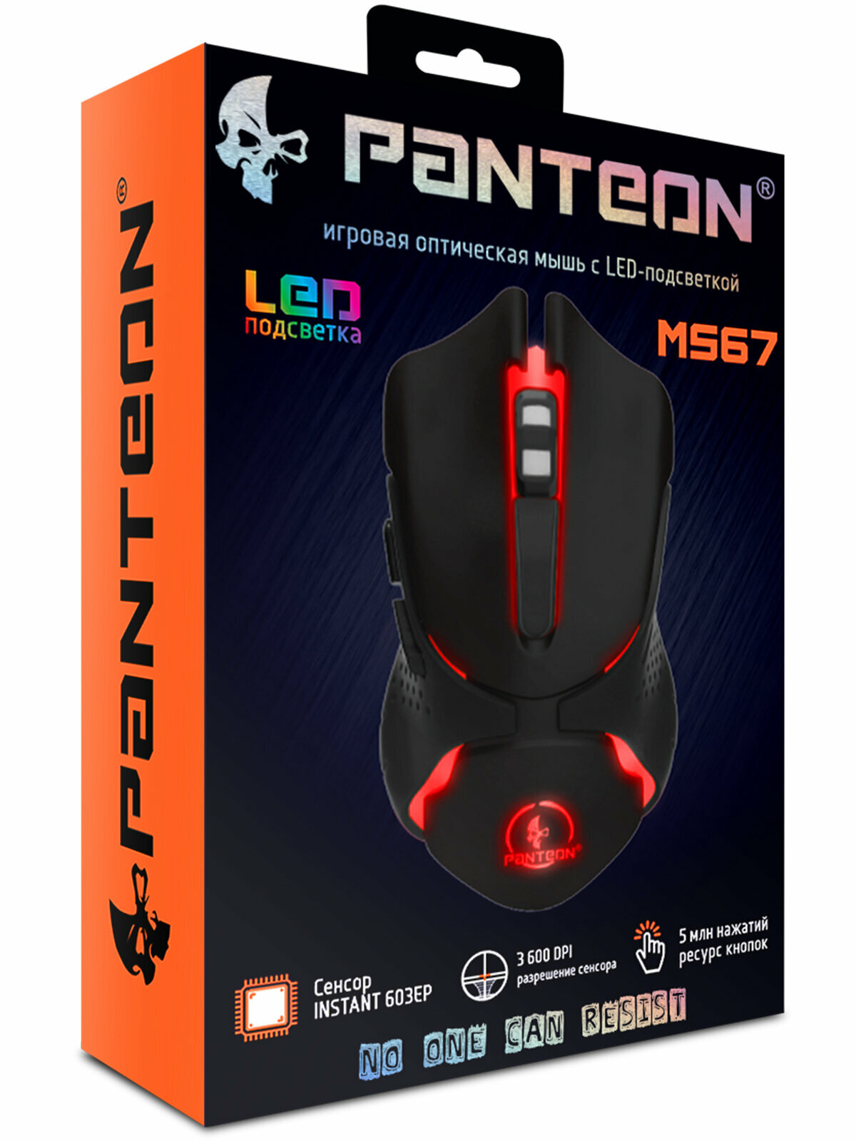 | Прочее | PANTEON MS-67 - игровая оптическая мышь с LED-подсветкой в эксклюзивном стильном корпусе создана на базе надежного сенсора 702IC. Дизайн устройства порадует любителей агрессивных форм, техническое решение обеспечит высокую точность позиционирования курсора и быстроту реакции мыши на движение руки пользователя.,,В зависимости от своих предпочтений пользователь может выбрать один из двух режимов работы мыши – классический или мультимедийный. В классическом режиме боковые кнопки выполняют функции «вперед/назад», а колесо прокрутки – перелистывание страниц документа. SD мультимедийном режиме боковые кнопки переключают предыдущий/следующий треки, а колесо прокрутки отвечает за громкость.Для смены режима работы кнопок необходимо нажать кнопку DPI- и удерживать ее в течение 5 секунд.,,Разрешение сенсора переключается между 4 предустановленными уровнями 800 / 1200 /1600 / 2400 DPI, что позволяет точно прицеливаться и быстро выполнять любые игровые действия. Кнопки переключения уровня чувствительности сенсора находится рядом с колесом прокрутки, что дает возможность быстро переключаться между установленными значениями.,,Индикация смены разрешения осуществляется сменой цвета подсветки. Кроме того, подсветку можно полностью отключить, нажав одновременно боковую кнопку и DPI-, и удерживая их в течение 5 секунд. ,,Модель PANTEON MS67 обладает ультраэргономичным корпусом с покрытием UV matt и фактурными боковинами для комфортного и надежного хвата. |